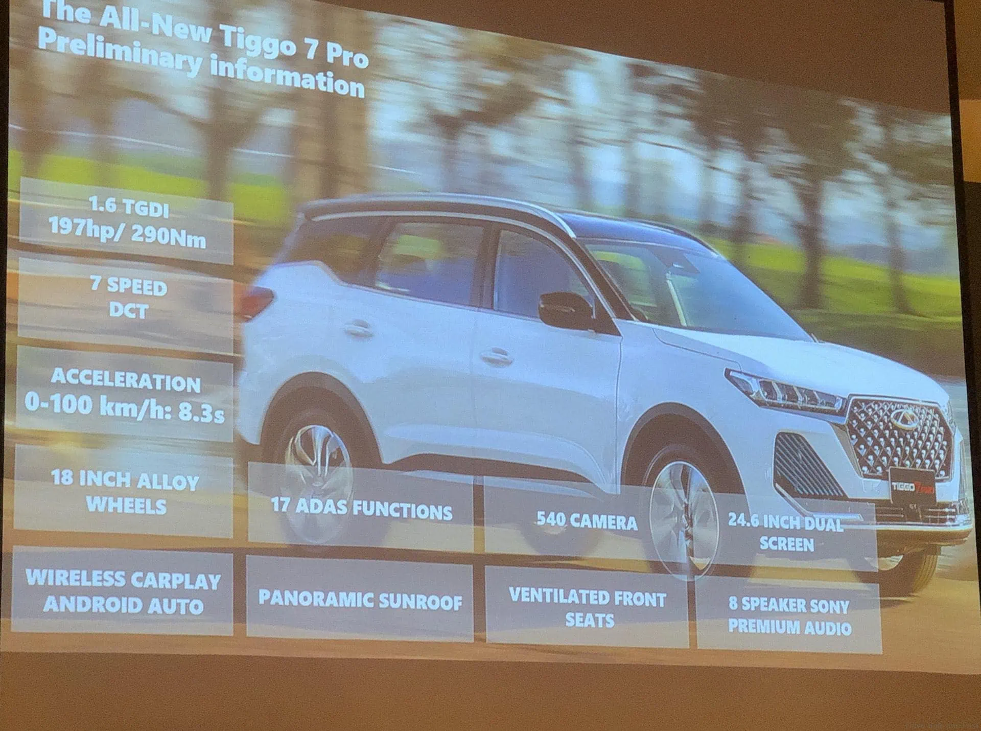 Melihat lebih dalam, Tiggo PRO 7 akan dilengkapi dengan enjin pengecas turbo 1.6TGDI yang mampu menghasilkan kuasa 197hp dan tork 290Nm, disalurkan melalui kotak gear DCT 7-kelajuan. Kenderaan ini mampu memecut dari 0 hingga 100km/j dalam hanya 8.3 saat dan menunggang pada roda aloi 18 inci.