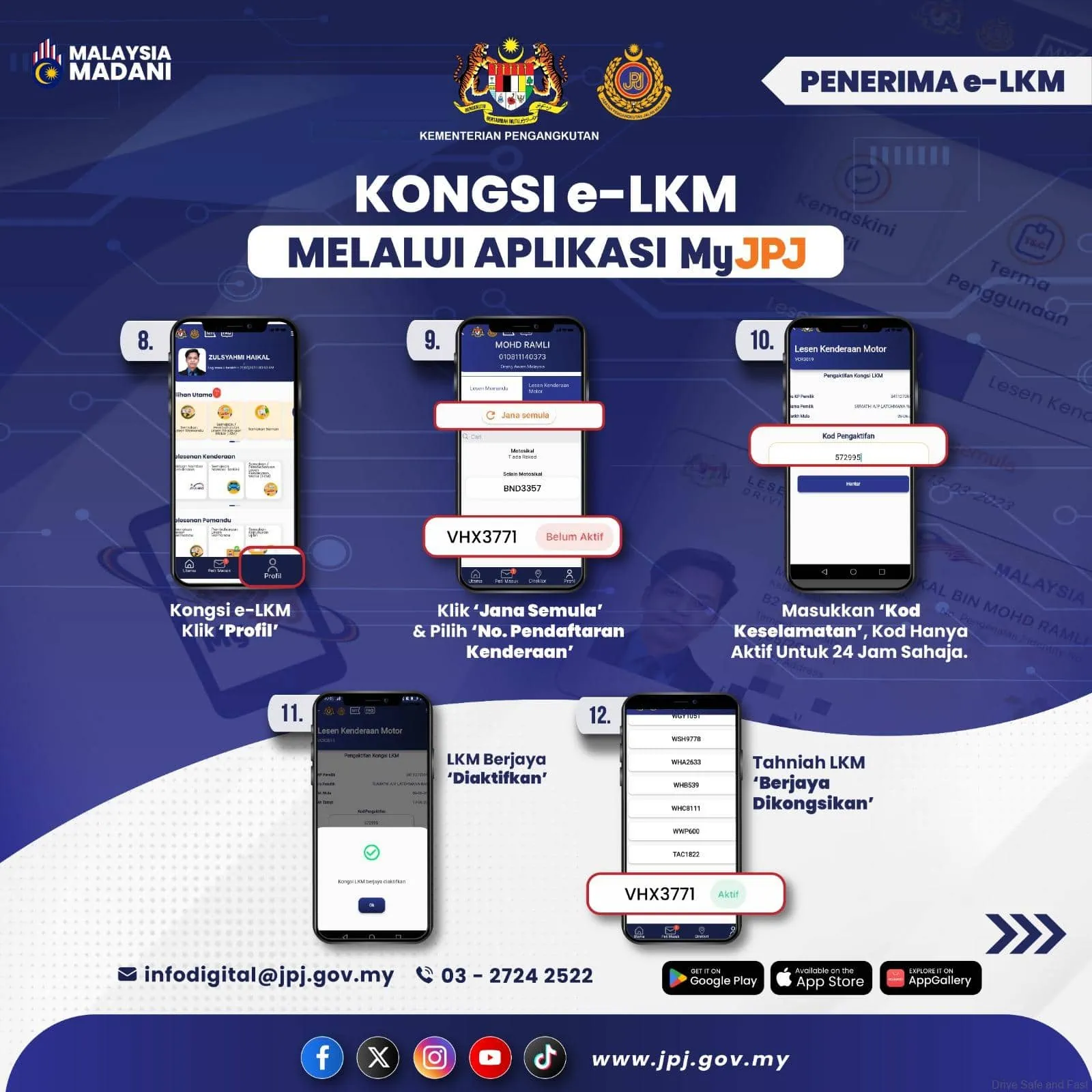 Kira-kira setahun yang lalu, Menteri Pengangkutan, YB Anthony Loke, telah mengumumkan bahawa pemilik kenderaan peribadi Malaysia kini boleh menggunakan Lesen Memandu Malaysia Digital dan Cukai Jalan Kenderaan Bermotor Digital sebagai pengganti dokumen fizikal semasa memandu. Versi digital ini dapat diakses melalui laman web awam JPJ atau aplikasi MyJPJ.
