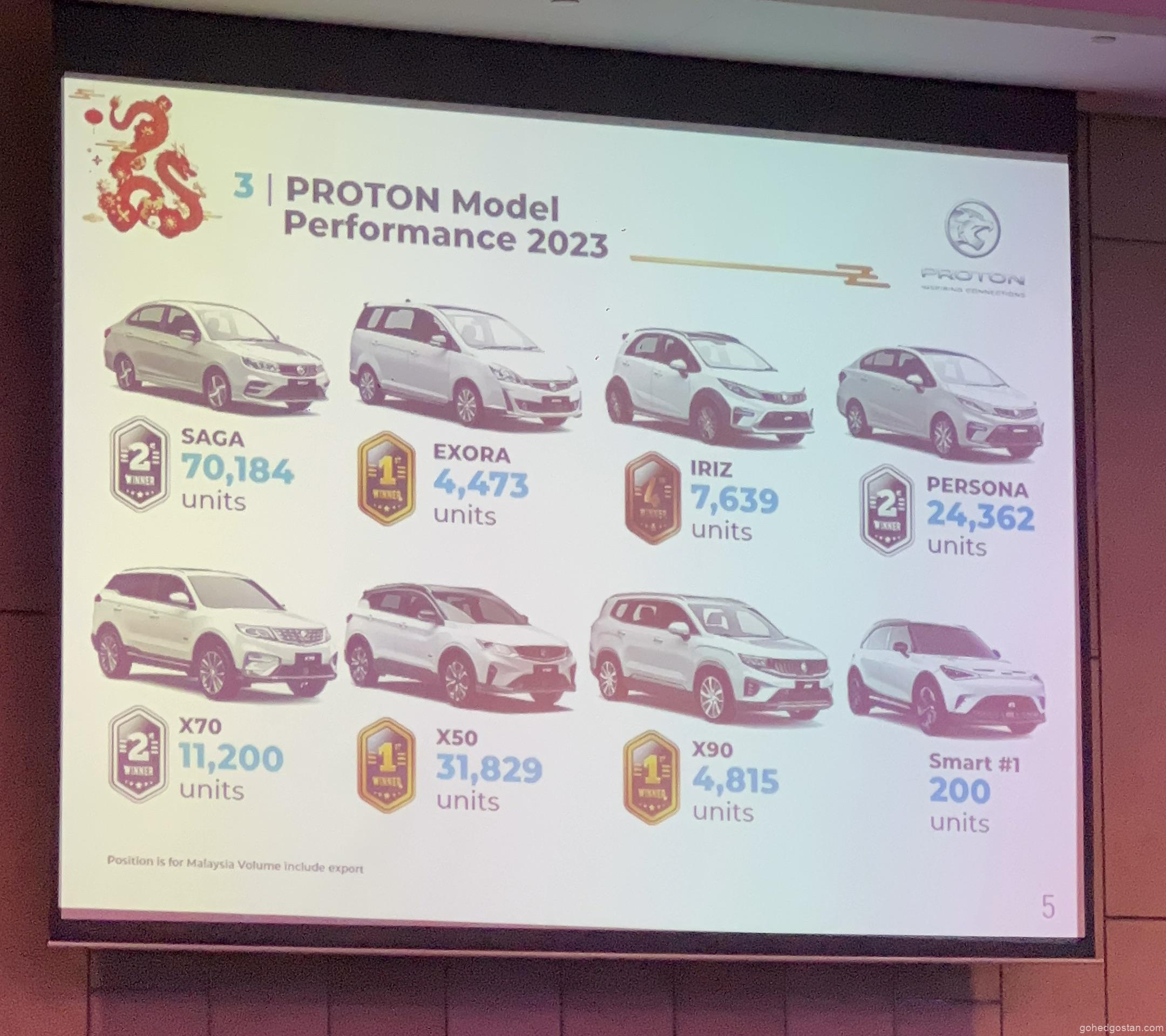 Di bawah “Model Asli”, tiga model tertutup telah diusik. Kami menganggap ini sebagai peningkatan model atau penggantian untuk Saga, Exora, Iriz dan Persona. Keempat-empat model ini dibangunkan sepenuhnya secara dalaman dan terus dijual walaupun selepas bermulanya kerjasama antara Geely dan PROTON. PROTON terus menjual Saga, Iriz, dan Persona sehingga hari ini kerana segmen harga ini dilindungi daripada persaingan langsung dengan jenama bukan nasional dan hanya Perodua boleh menawarkan saingan yang kompetitif dari segi harga. Exora baru-baru ini telah dihentikan, kemungkinan besar kerana model itu diperkenalkan lebih sedekad lalu dan Alza baharu Perodua terlalu berkuasa untuk bersaing.