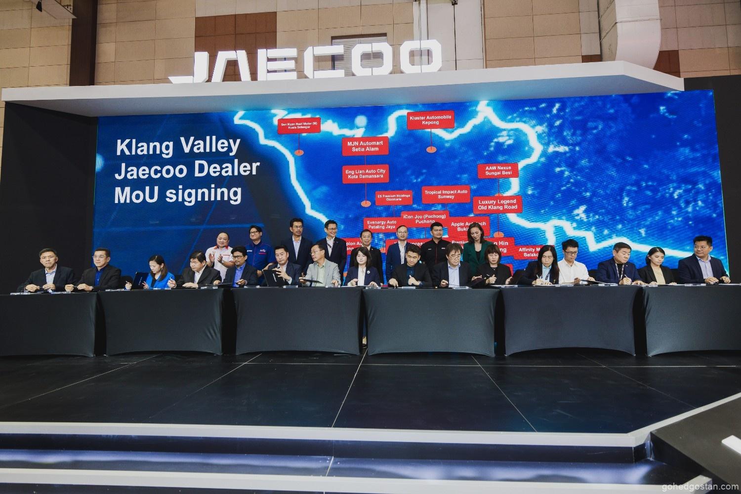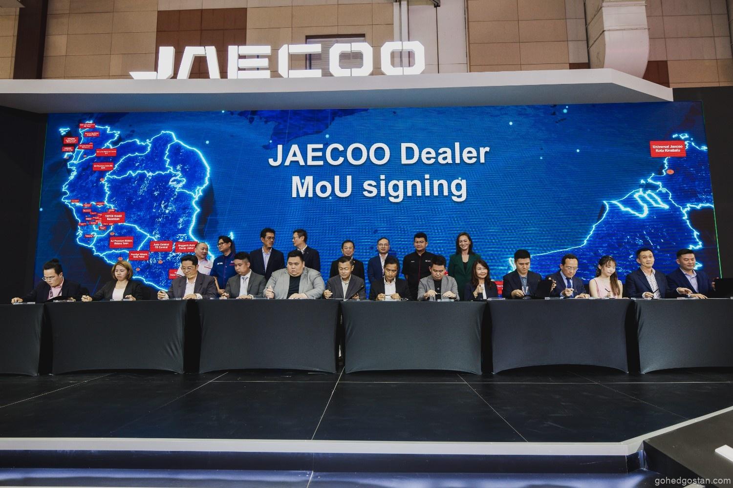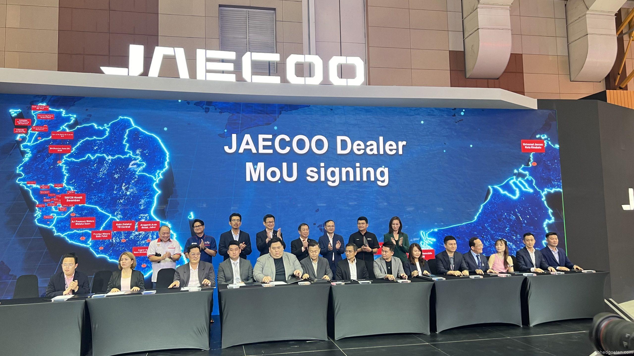 JAECOO Malaysia akan mengendalikan 35 pusat pengedaran dan perkhidmatan lepas jualan di seluruh negara, termasuk di wilayah tengah, utara, selatan, dan Malaysia Timur. Upacara penandatanganan perjanjian dengan 30 wakil pengedar ini diadakan sempena Malaysia Autoshow 2024, dengan kehadiran Leo Chen dan Naib Presiden, Emily Lek.