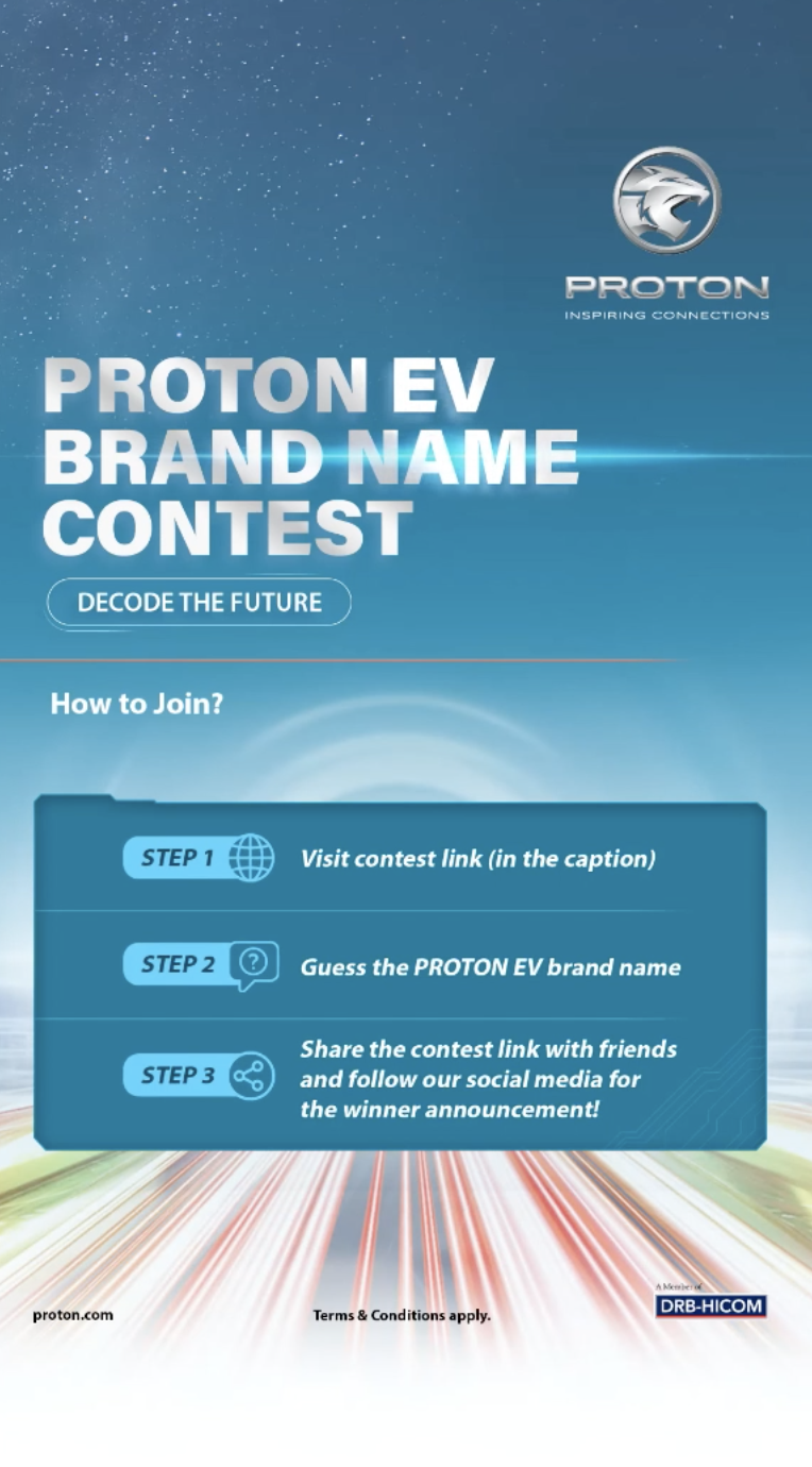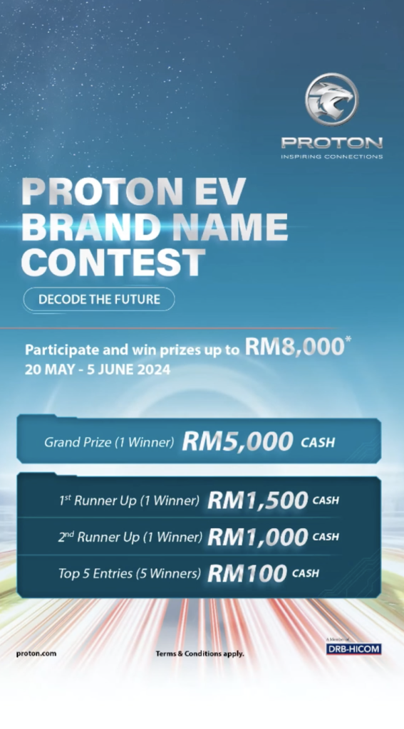 Walaupun menggunakan platform Galaxy E5, Proton tidak akan menggunakan nama yang sama. Sebaliknya, Proton telah melancarkan satu pertandingan unik di mana rakyat Malaysia dijemput untuk meneka nama jenama baharu bagi EV tersebut. Pertandingan ini menunjukkan betapa Proton menghargai pandangan dan penyertaan rakyat Malaysia dalam menentukan masa depan jenama mereka.
