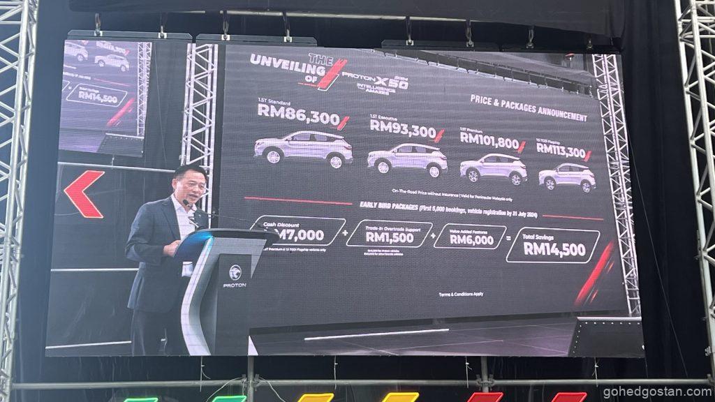 • 2024 Proton X50 1.5T Premium: RM101,800 (Semenanjung Malaysia), RM103,800 (Malaysia Timur)