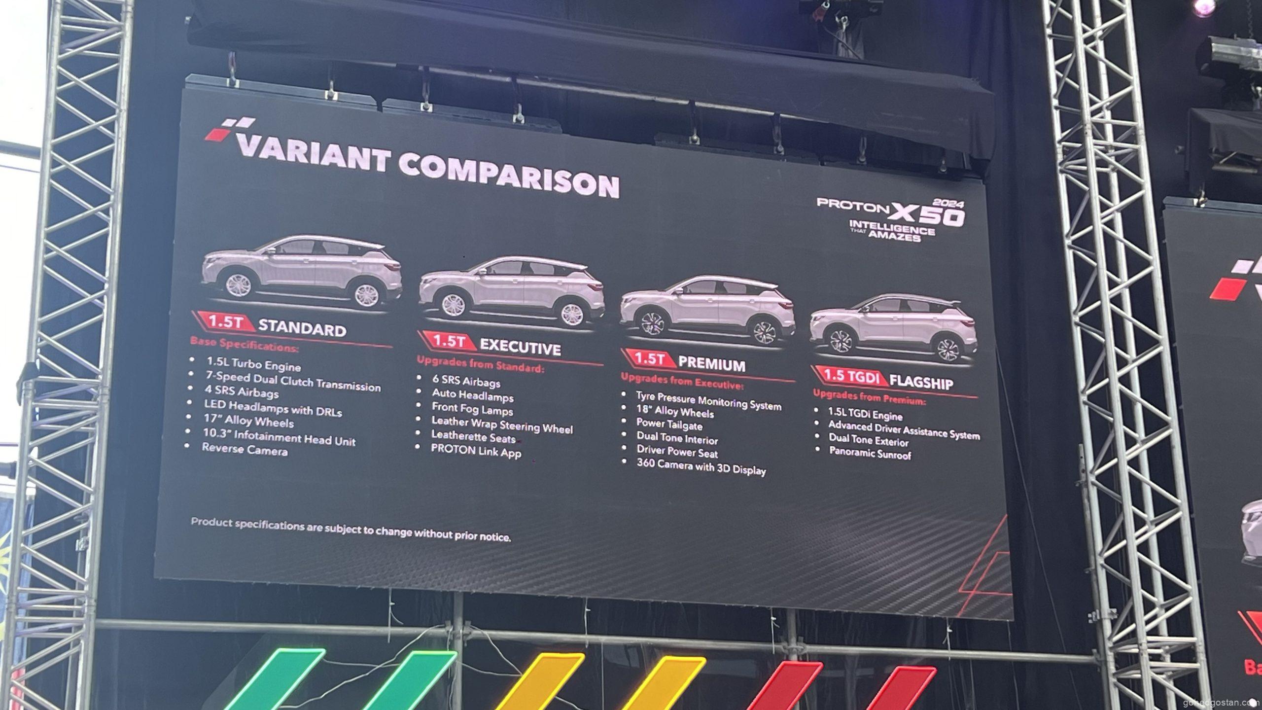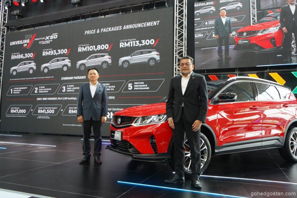 • 2024 Proton X50 1.5T Premium: RM101,800 (Semenanjung Malaysia), RM103,800 (Malaysia Timur)
