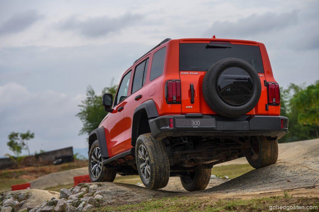 Dikuasakan oleh enjin petrol turbo 4-silinder 2.0L dan transmisi automatik 8-kelajuan, GWM TANK 300 menghasilkan 220 PS dan tork 380 Nm. Sistem 4WD separuh masa dan pelbagai mod pemanduan seperti ‘Tank Turn’ dan ‘Crawl Control’ memastikan kenderaan ini mampu mengharungi pelbagai jenis permukaan, termasuk laluan berbukit dan berair sehingga 700 mm. Ketika menekan butang mula, enjin adalah senyap – 2.0 liter enjin petrol, transmisi automatik 8 kelajuan, 220 hp, 380 nm tork. Kabin yang hampir senyap disebabkan oleh NVH ultra senyap. Ciri yang paling saya suka adalah Tank Turn, yang membantu Tank 300 berpusing dengan senang di laluan yang sangat sempit.