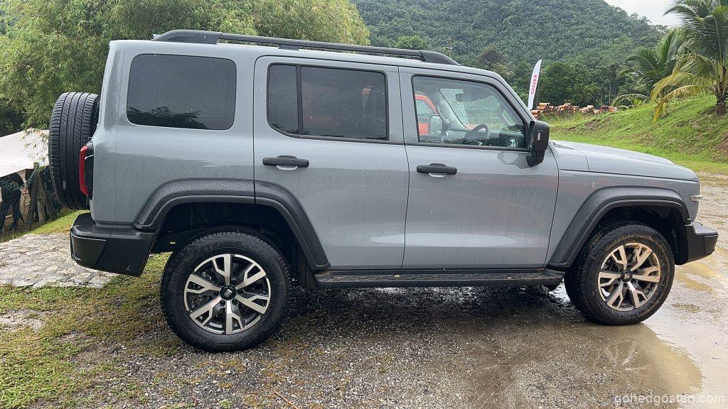 GWM TANK 300 menampilkan reka bentuk yang lasak dengan kerangka ‘Ladder Frame Construction’ dan casis off-road profesional. Roda aloi krom 18″ dan pilihan warna menarik seperti ‘Dusk Orange’, ‘Fossil Grey’, ‘Crystal Black’, dan ‘Pearl White’ menambah estetika moden pada kenderaan ini. Bahagian dalamannya pula dilengkapi dengan kulit NAPPA hitam, skrin instrumen 12.3”, sistem infotainment skrin sentuh, dan sistem bunyi Infinity dengan 9 pembesar suara. Saya suka rupa Tank 300 kerana ia menyerupai Mercedes-Benz G-Wagon. Reka bentuknya yang berkotak tetapi bergaya, serta bahagian dalamnya yang mempunyai ciri-ciri yang serupa seperti ventilasi udaranya, memberikan keselesaan dengan bahan berkualiti yang tinggi.
