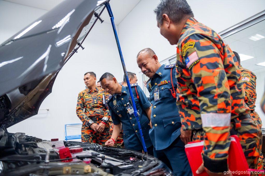 Menurut PgKB I Mohd Tilmizi bin Mustapa, “Dengan peningkatan mobiliti elektrik, terdapat keperluan mendesak untuk memahami dan memanfaatkan potensi serta cabaran pemanduan EV. Penting untuk penyelamat kecemasan dilatih mengenai prosedur keselamatan untuk mengendalikan kenderaan bertegangan tinggi dan bateri serta menggunakan pengimbas bateri untuk menilai keadaan bateri. Selain itu, mengenal pasti pelbagai model EV dan komponen spesifik mereka termasuk teknik pemotongan untuk operasi penyelamatan adalah penting. Latihan khusus ini mengurangkan risiko semasa insiden dan meningkatkan kecekapan serta keselamatan pasukan kami, membolehkan mereka menguruskan situasi dengan berkesan sambil meminimumkan bahaya kepada diri sendiri dan orang awam.”