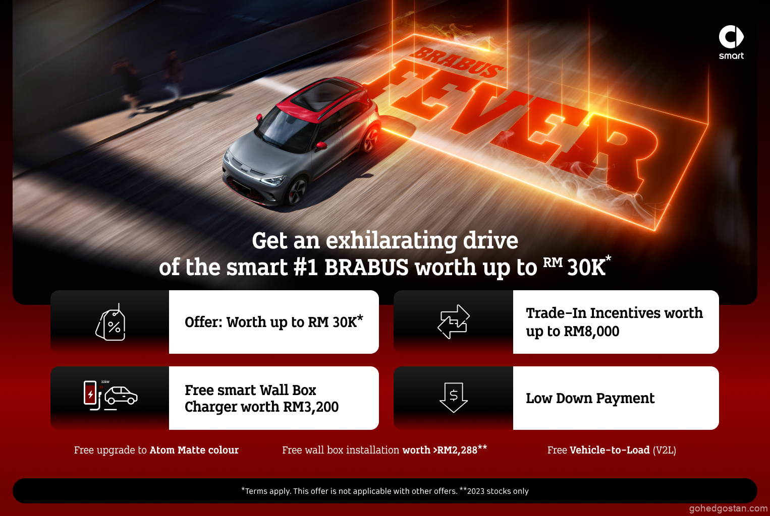 Peminat kenderaan elektrik dijemput untuk melihat dan merasai sendiri kecanggihan smart #1 dan #3, termasuk varian Pro Premium dan BRABUS. Pengunjung juga boleh menikmati tawaran istimewa BRABUS Fever dengan ganjaran bernilai sehingga RM30,000 untuk pembelian smart #1 BRABUS. Selain itu, mereka juga berpeluang untuk pandu uji kenderaan smart dan mendapat maklumat berharga daripada pakar penjual di lokasi.