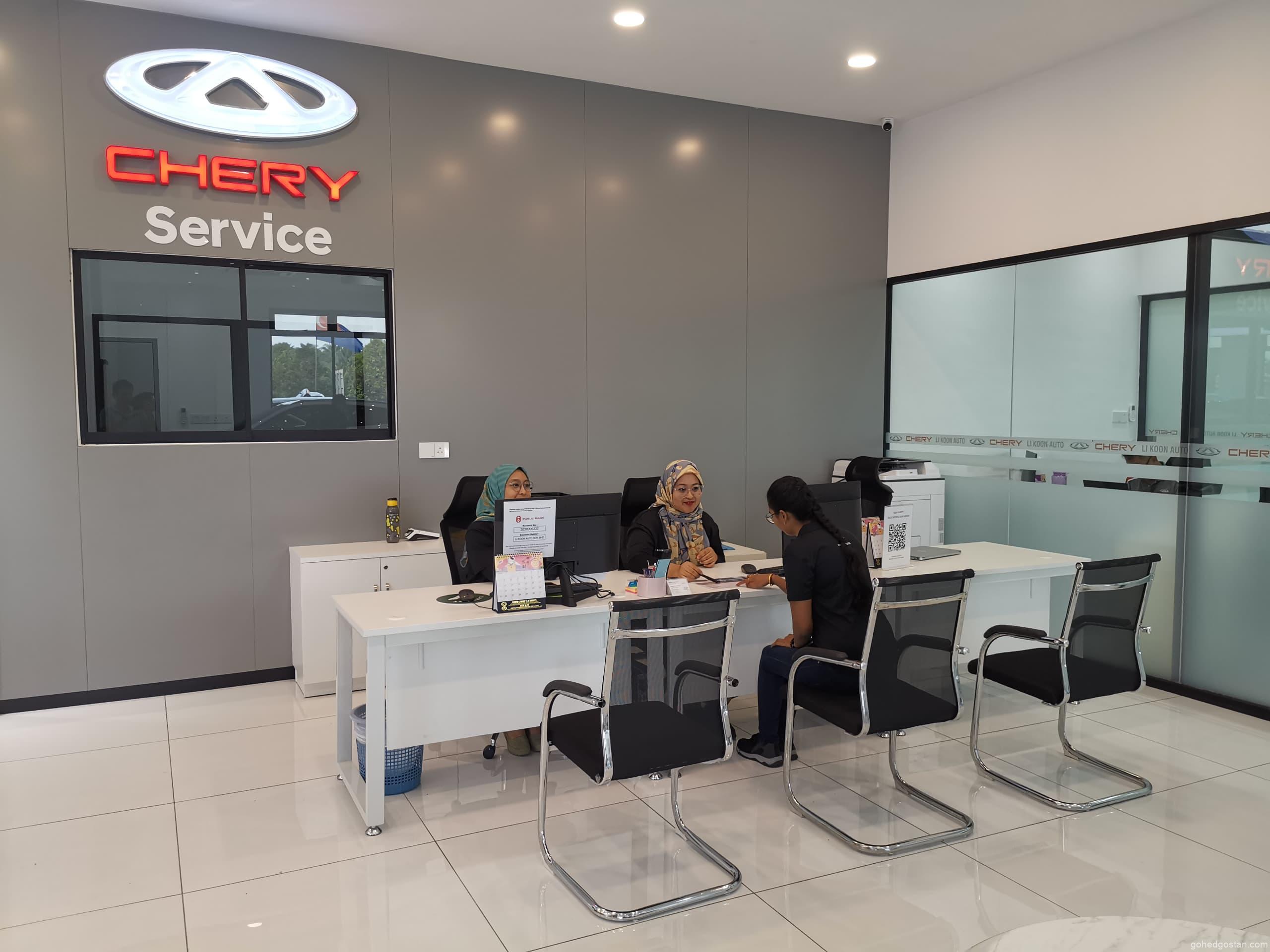 Pusat 3S Chery Kluang ini dilengkapi dengan pusat servis yang mempunyai 4 ruang servis, semuanya dikendalikan oleh juruteknik Chery yang sangat terlatih. Menurut Pengarah Jaringan Chery Malaysia, Soon Boon Ping, “Semasa kami meluaskan kehadiran kami di Johor, matlamat kami adalah untuk melayani lebih ramai pelanggan, merangkumi komuniti yang dinamik seperti Muar, Skudai, Johor Bahru, dan kini Kluang. Pengembangan strategik ini membolehkan lebih ramai pelanggan merasai kemudahan, kualiti, dan perkhidmatan komprehensif yang dirayakan oleh Chery.”