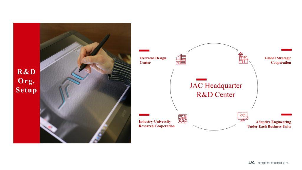 Inovasi adalah kunci kejayaan JAC Motors, terutama dalam sektor kenderaan komersial. Dengan hampir 5,000 jurutera yang bekerja dalam penyelidikan dan pembangunan (R&D), syarikat ini melaburkan 5-8% daripada hasil jualan tahunan kembali ke dalam R&D bagi memastikan mereka sentiasa di barisan hadapan dalam kemajuan teknologi. Komitmen ini diperkuatkan dengan infrastruktur R&D global JAC, termasuk kerjasama dengan universiti, pusat reka bentuk luar negara, dan kerjasama dengan gergasi industri seperti NIO, Volkswagen, dan Cummins.