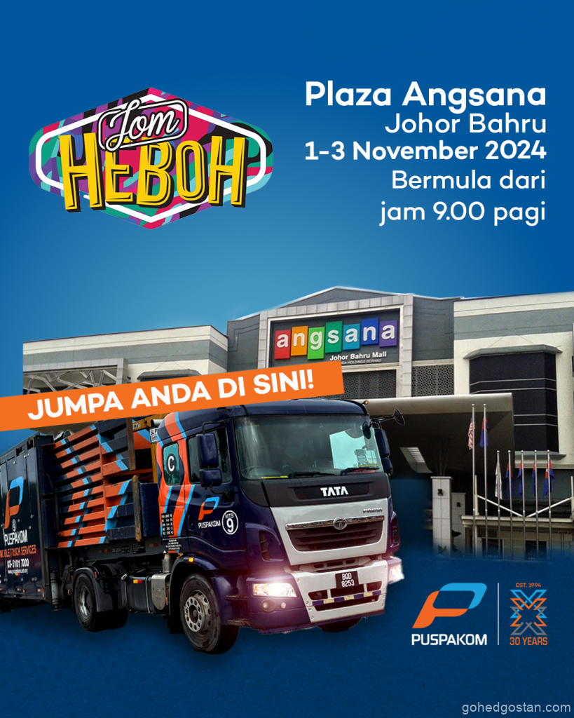 Shah Alam, 29 Oktober 2024 – PUSPAKOM dengan bangganya mengumumkan penyertaannya dalam Karnival Jom Heboh (KJH) anjuran Media Prima di Plaza Angsana, Johor Bahru pada 1 hingga 3 November 2024. Inisiatif ini bertujuan mendekatkan PUSPAKOM dengan masyarakat sambil memberi peluang kepada pengunjung untuk memahami peranan PUSPAKOM dengan lebih mendalam.