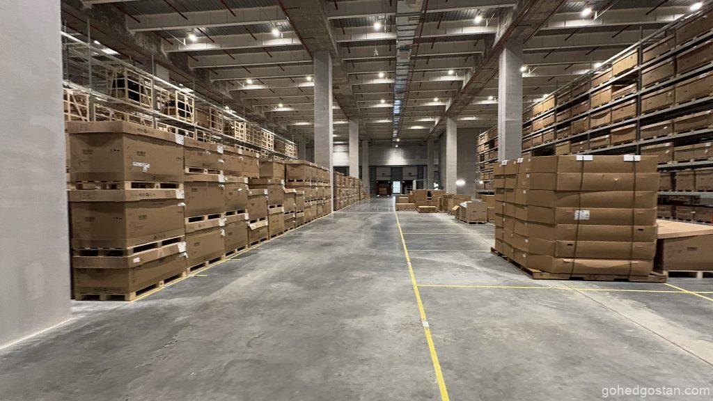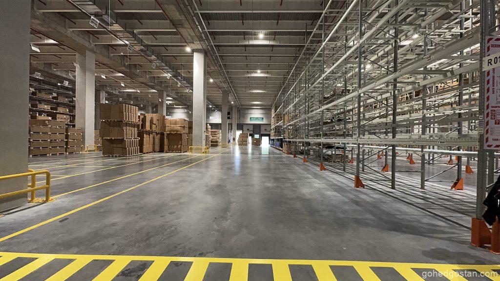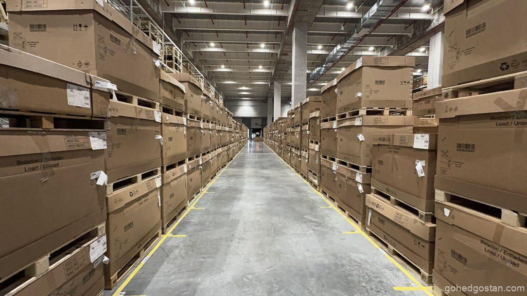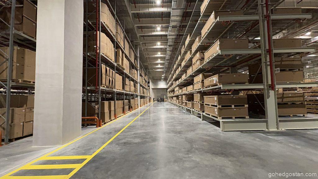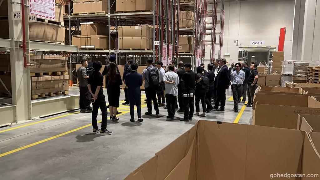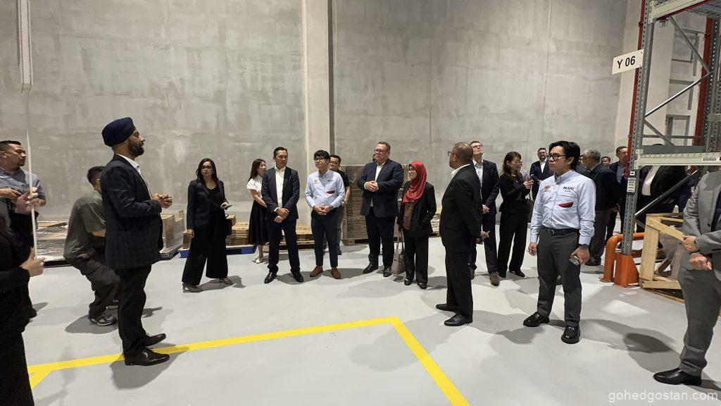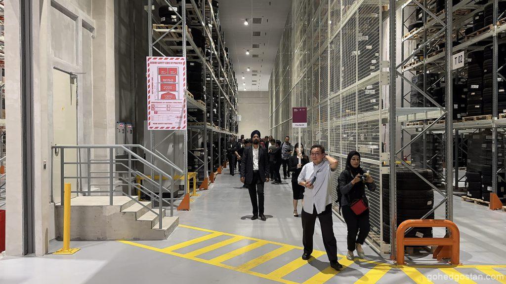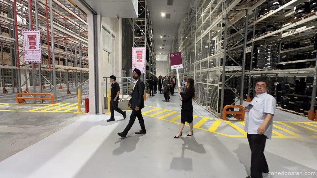 Dengan kemudahan canggih yang baharu diperkenalkan, pusat ini kini memiliki Kawasan Penyimpanan Bateri Voltan Tinggi (HV) yang dikhaskan untuk memenuhi keperluan teknologi hijau yang semakin menjadi keutamaan global. Sistem rak lorong sangat sempit (VNA) pula meningkatkan kecekapan penyimpanan dan pengambilan barangan, membolehkan proses logistik dijalankan dengan lebih pantas dan teratur.