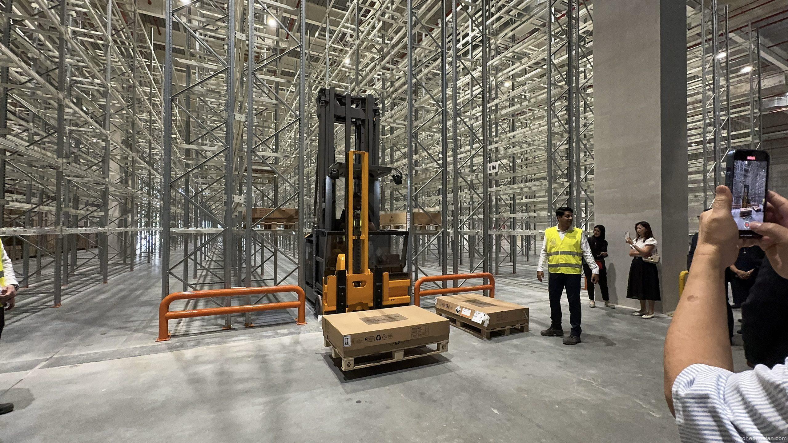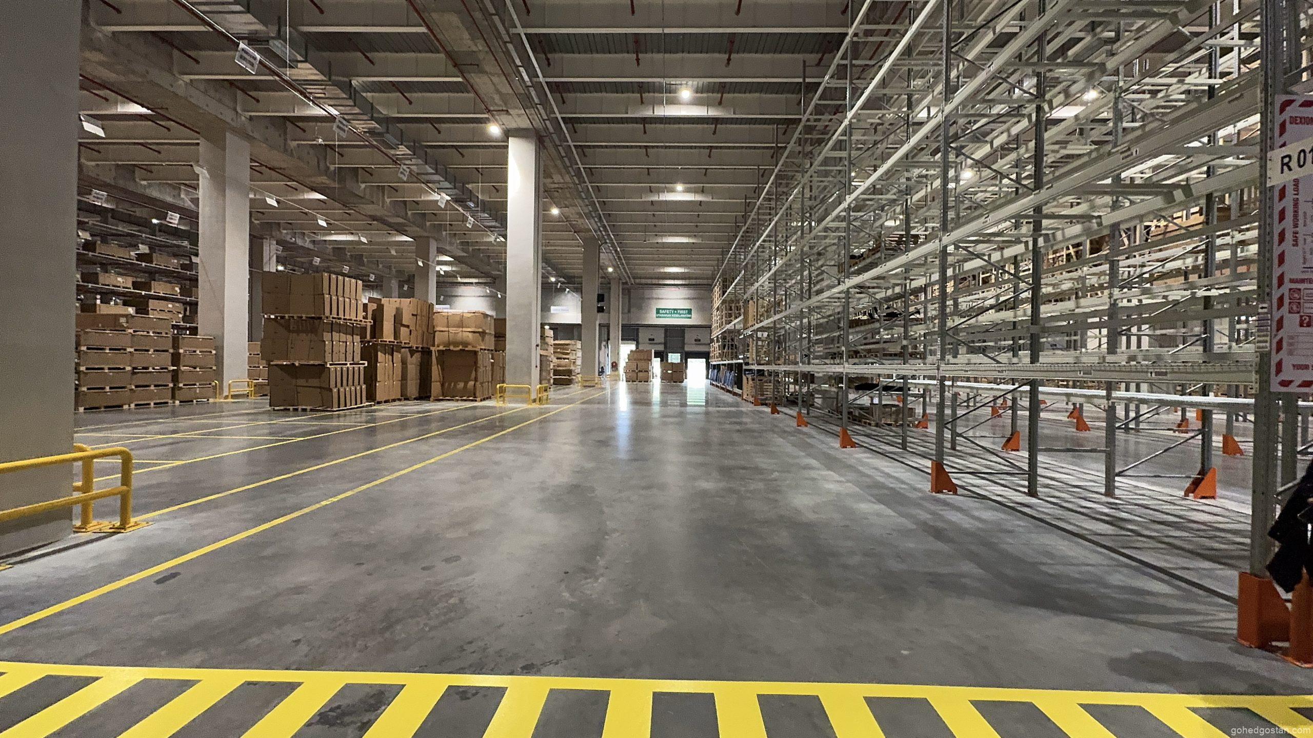 Dengan kemudahan canggih yang baharu diperkenalkan, pusat ini kini memiliki Kawasan Penyimpanan Bateri Voltan Tinggi (HV) yang dikhaskan untuk memenuhi keperluan teknologi hijau yang semakin menjadi keutamaan global. Sistem rak lorong sangat sempit (VNA) pula meningkatkan kecekapan penyimpanan dan pengambilan barangan, membolehkan proses logistik dijalankan dengan lebih pantas dan teratur.
