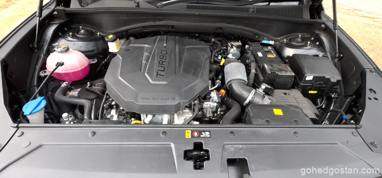 Sebaik sahaja enjin 2.2L CRDi turbodiesel dihidupkan, serta-merta terasa karakternya – senyap, bertenaga dan penuh keyakinan. Dengan 202 PS dan 440 Nm tork, tidak perlu menekan pedal terlalu dalam untuk mendapatkan kuasa yang diperlukan, terutama ketika mahu memotong atau mendaki bukit.