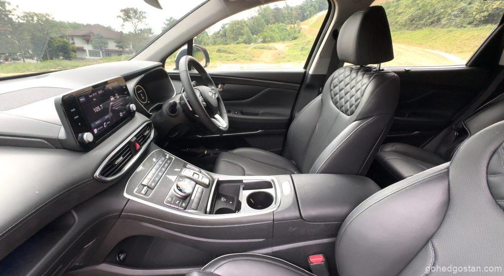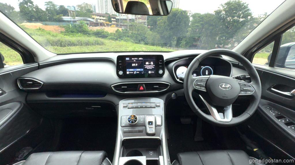 Bila masuk ke dalam kabin, terasa betapa luasnya ruang dalaman Santa Fe. Tempat duduk balutan kulit sintetik, panel digital 12.3 inci, serta infotainmen skrin sentuh 10.25 inci yang menyokong Apple CarPlay dan Android Auto tanpa wayar menjadikan pengalaman dalam kabin lebih premium.