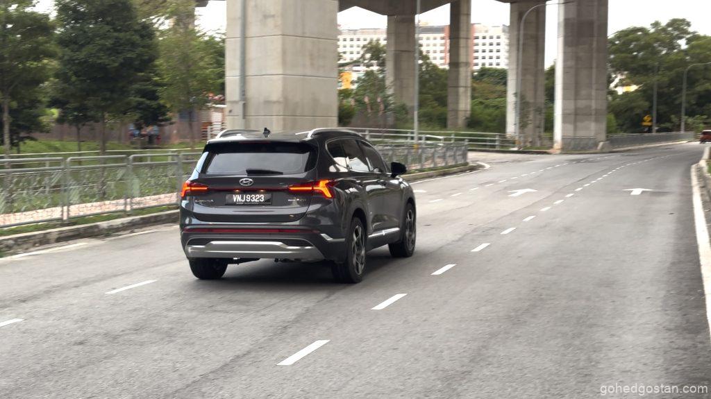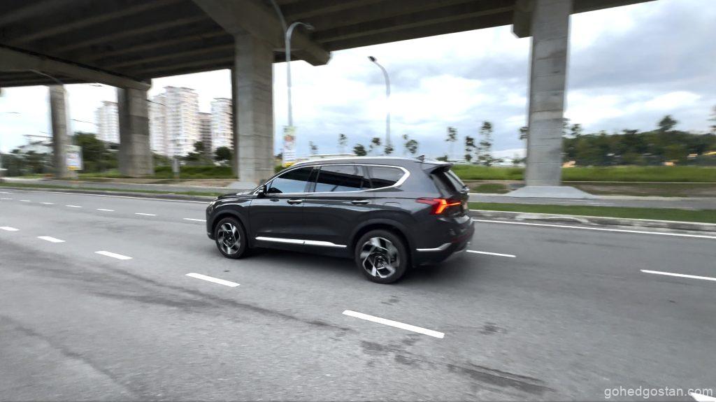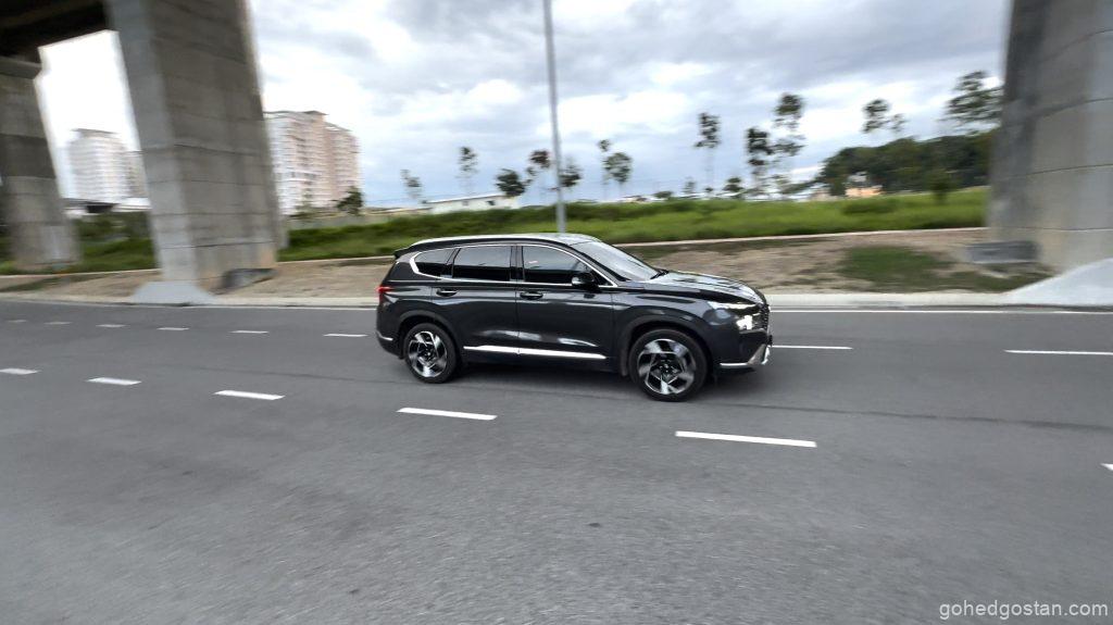 Kami menguji Santa Fe ini di lebuh raya untuk melihat kestabilan dan tahap keselesaan kabinnya. Sistem HTRAC AWD memastikan cengkaman yang baik walaupun dalam keadaan hujan, dan suspensi multilink belakang menjadikan perjalanan lebih selesa, terutama di laluan berbonggol atau tidak rata.