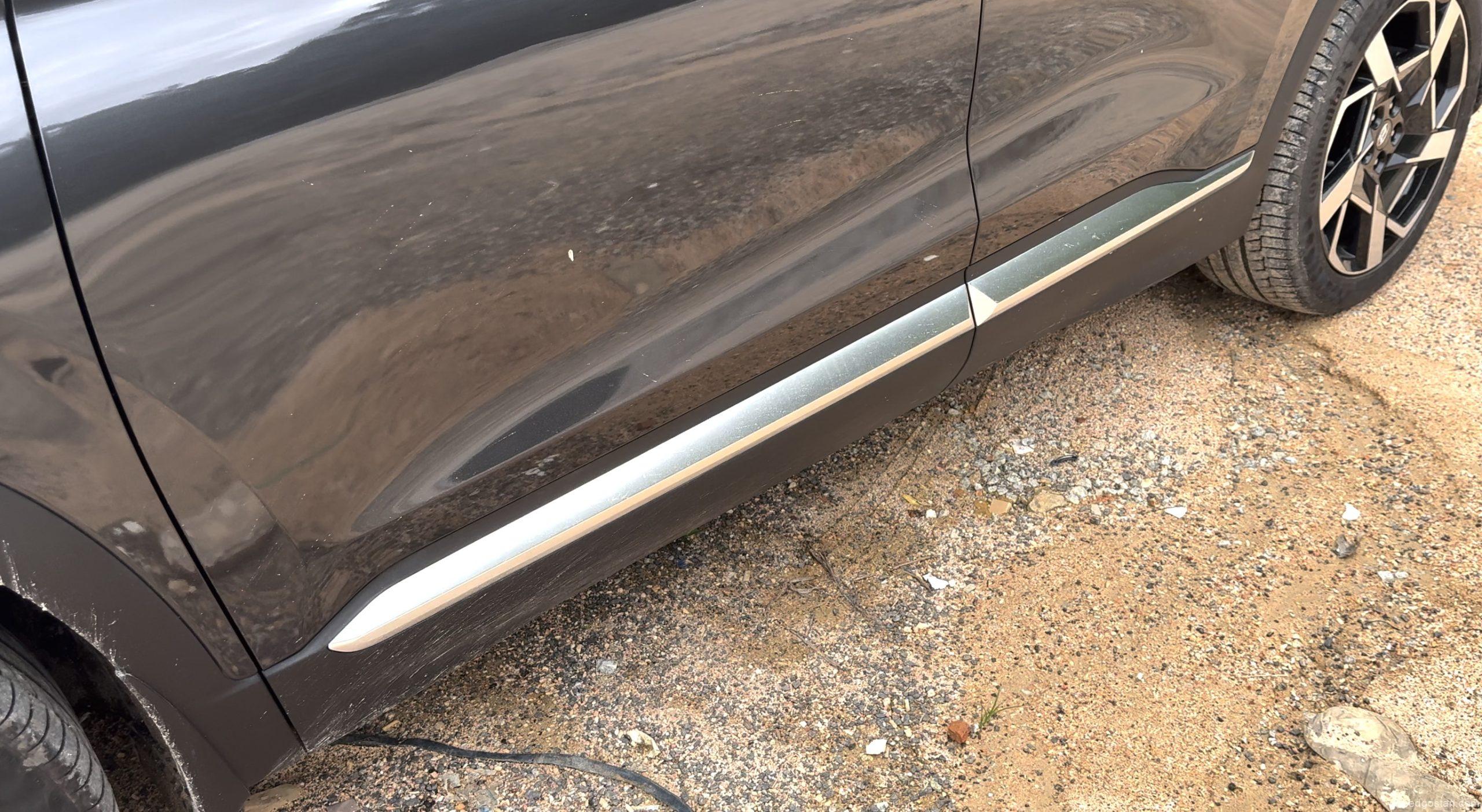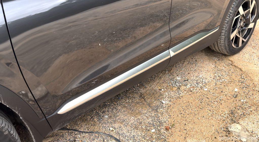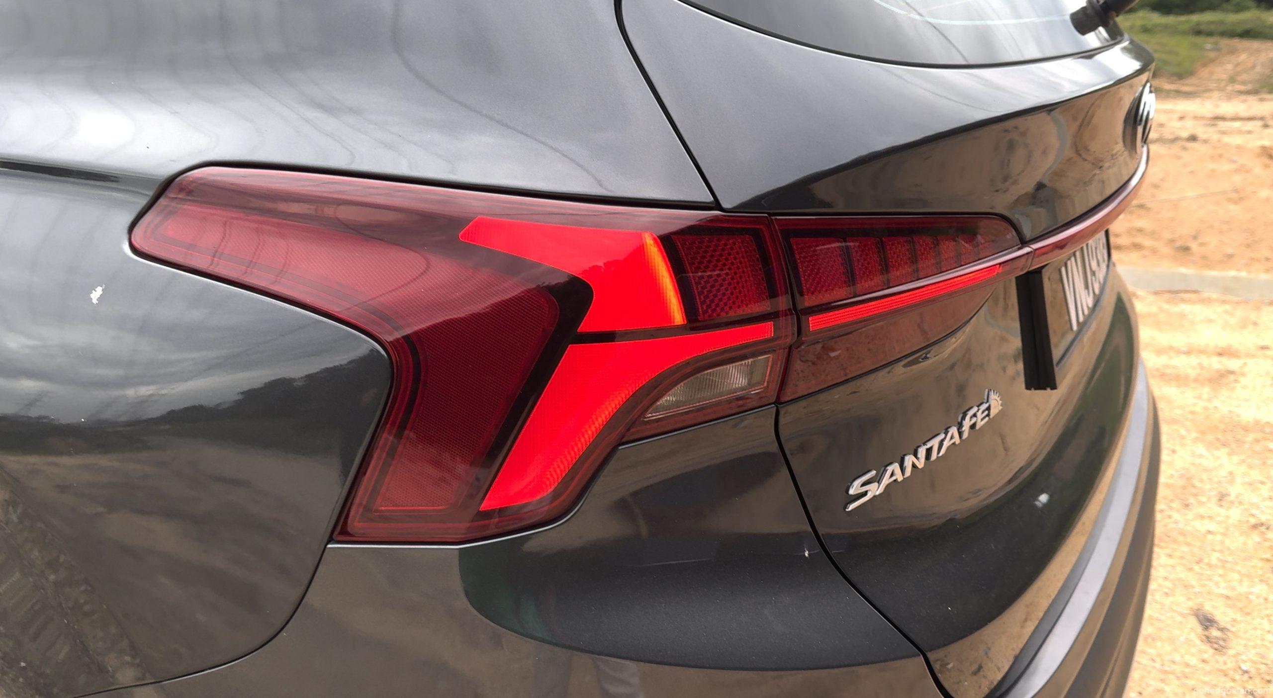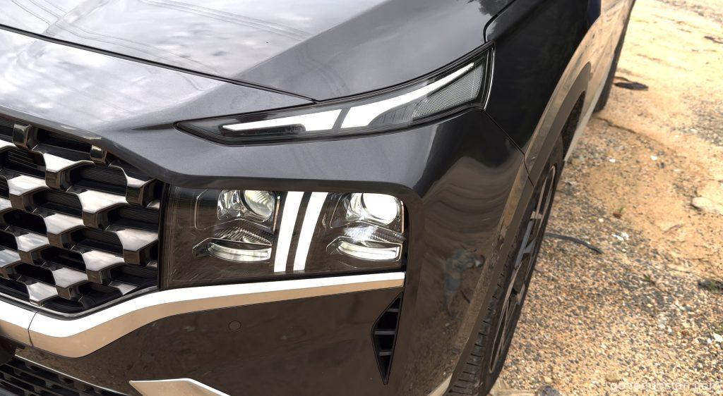 Dari pandangan pertama, Santa Fe baharu ini tampil dengan imej lebih garang. Lampu depan LED berbentuk T yang bersambung dengan gril hadapan memberikan identiti unik. Garisan badan yang lebih maskulin serta rim 19-inci menjadikannya kelihatan lebih tegap dan kukuh. Di belakang, lampu belakang bersambung dengan bar reflektif menambah elemen moden dan lebar visual yang lebih stabil.