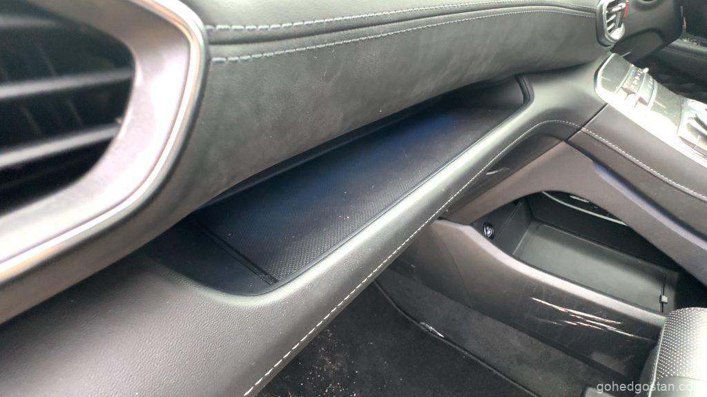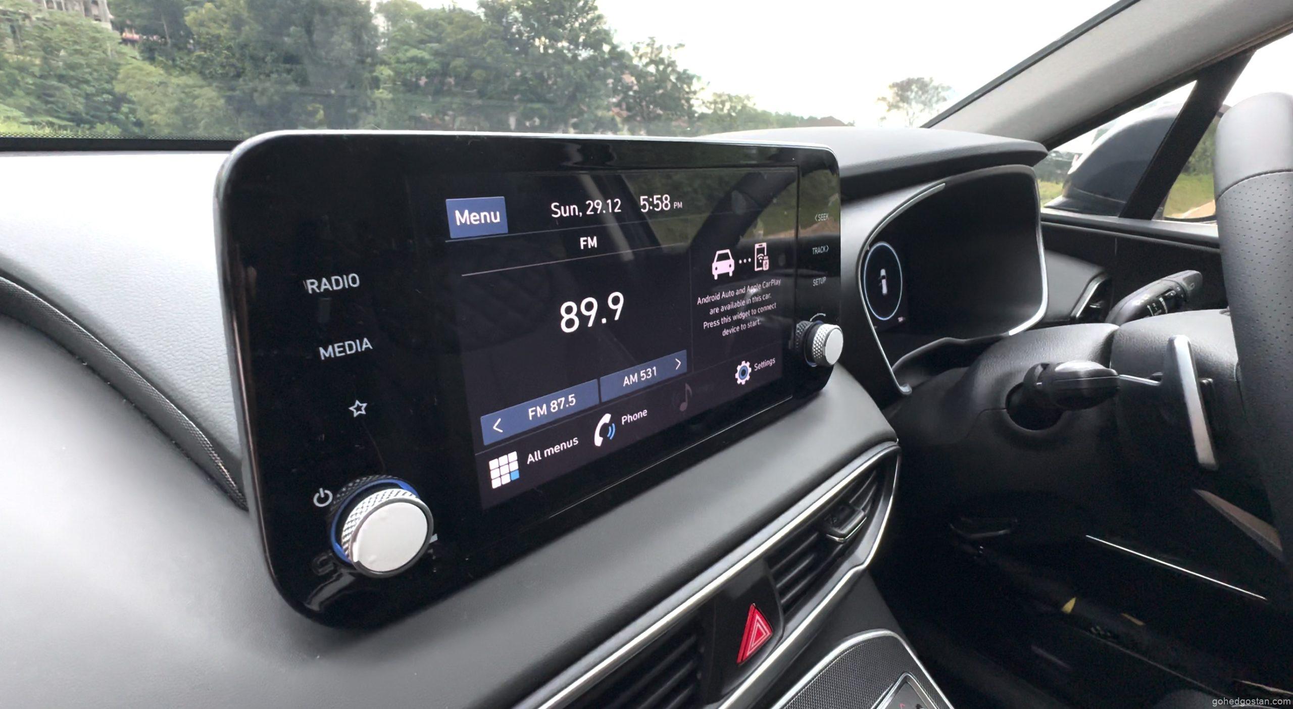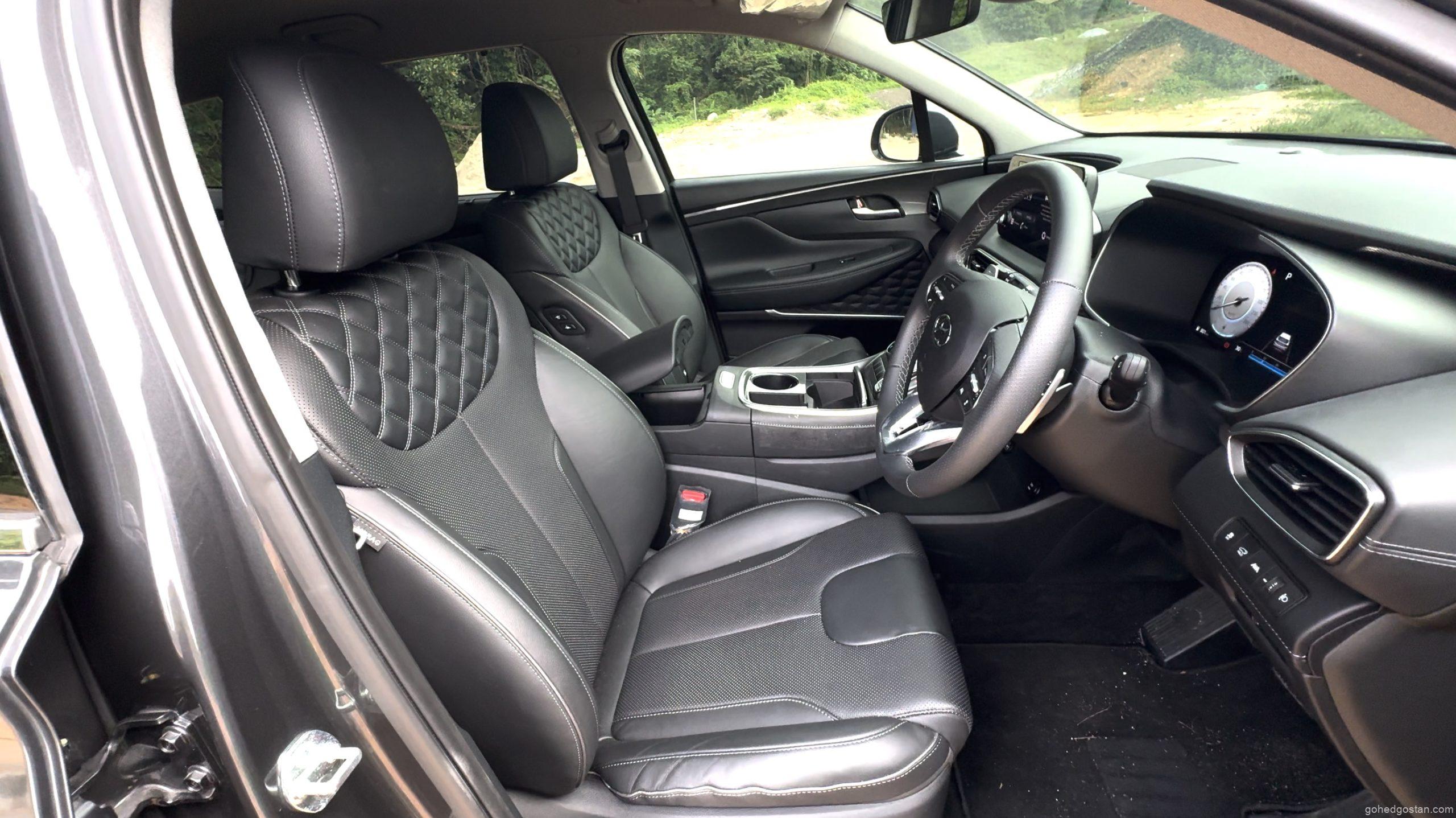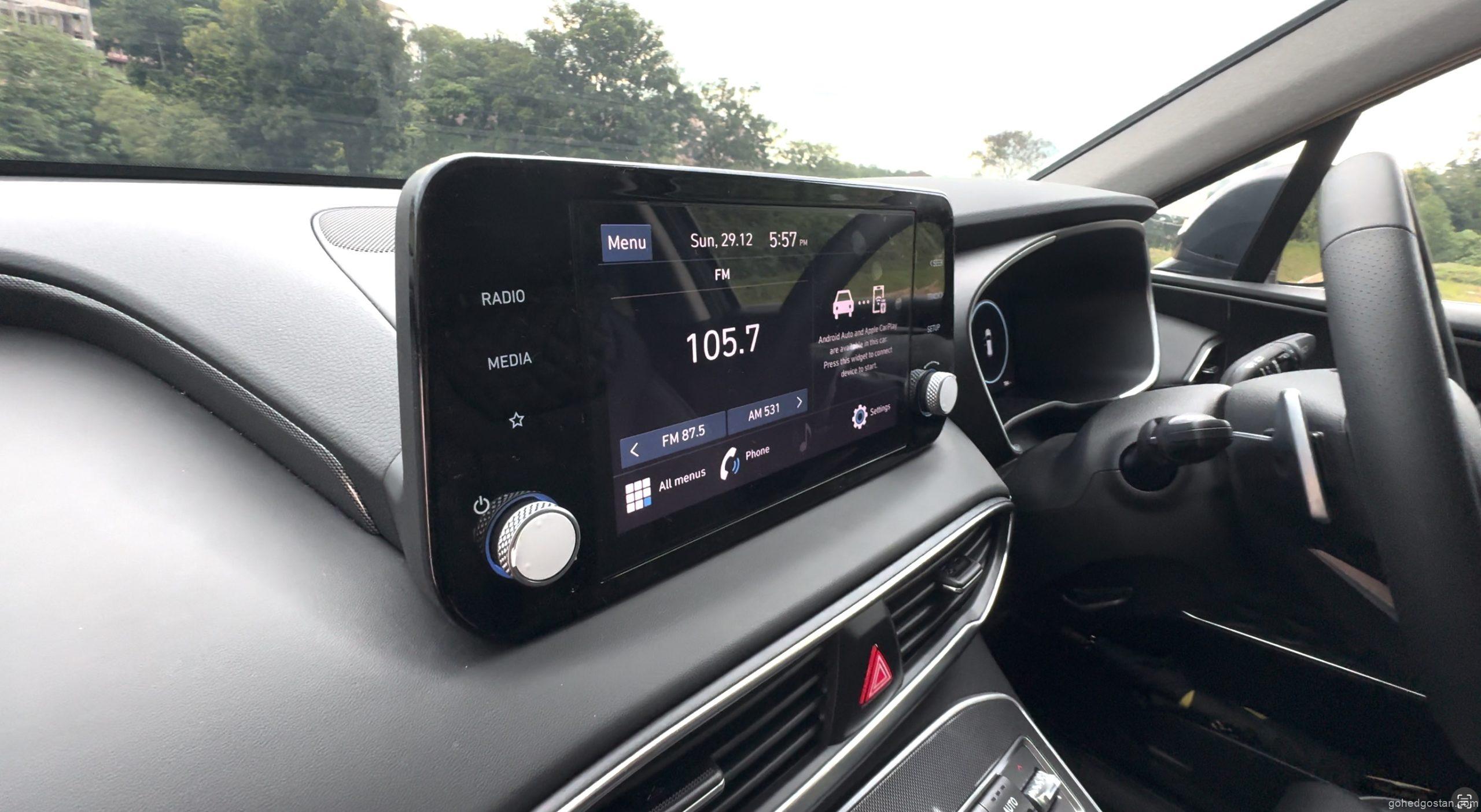 Bila masuk ke dalam kabin, terasa betapa luasnya ruang dalaman Santa Fe. Tempat duduk balutan kulit sintetik, panel digital 12.3 inci, serta infotainmen skrin sentuh 10.25 inci yang menyokong Apple CarPlay dan Android Auto tanpa wayar menjadikan pengalaman dalam kabin lebih premium.