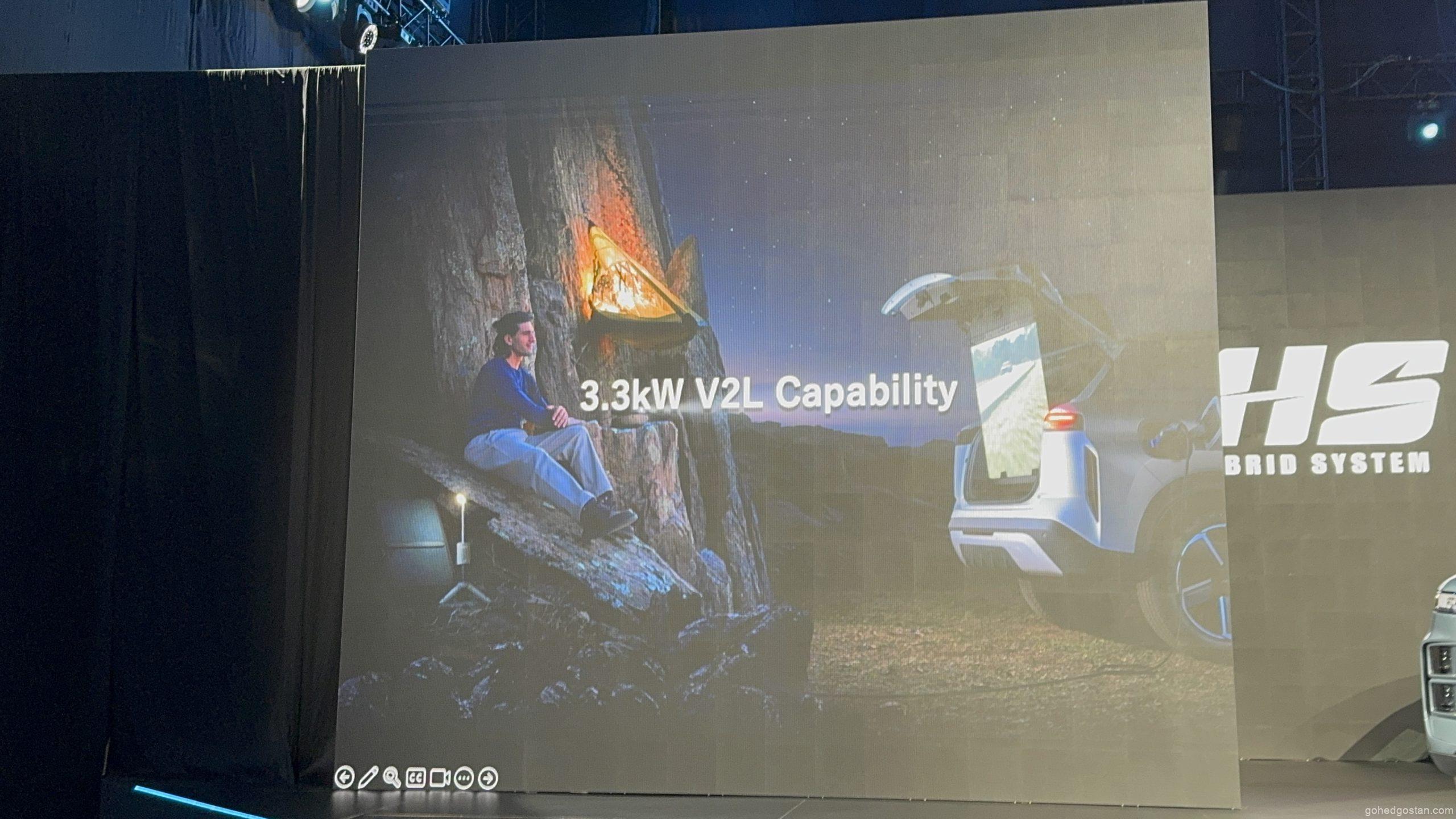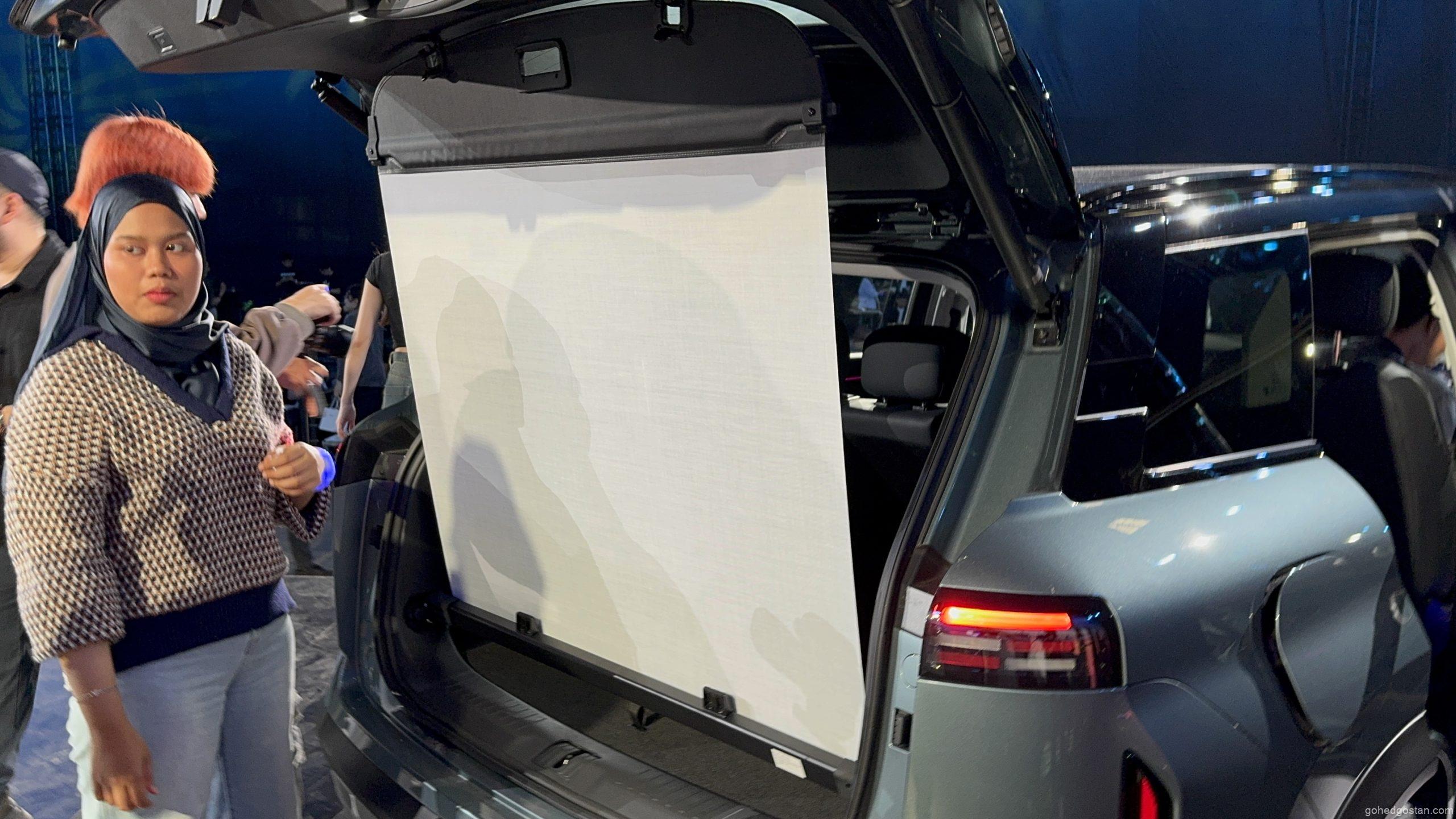 - Penutup Tonneau Pawagam – Bahagian bawah boleh diterbalikkan untuk menjadi skrin projektor, membolehkan pengguna menikmati tayangan filem atau siaran langsung sukan menggunakan kuasa daripada Vehicle-to-Load (V2L) 3.3kW.