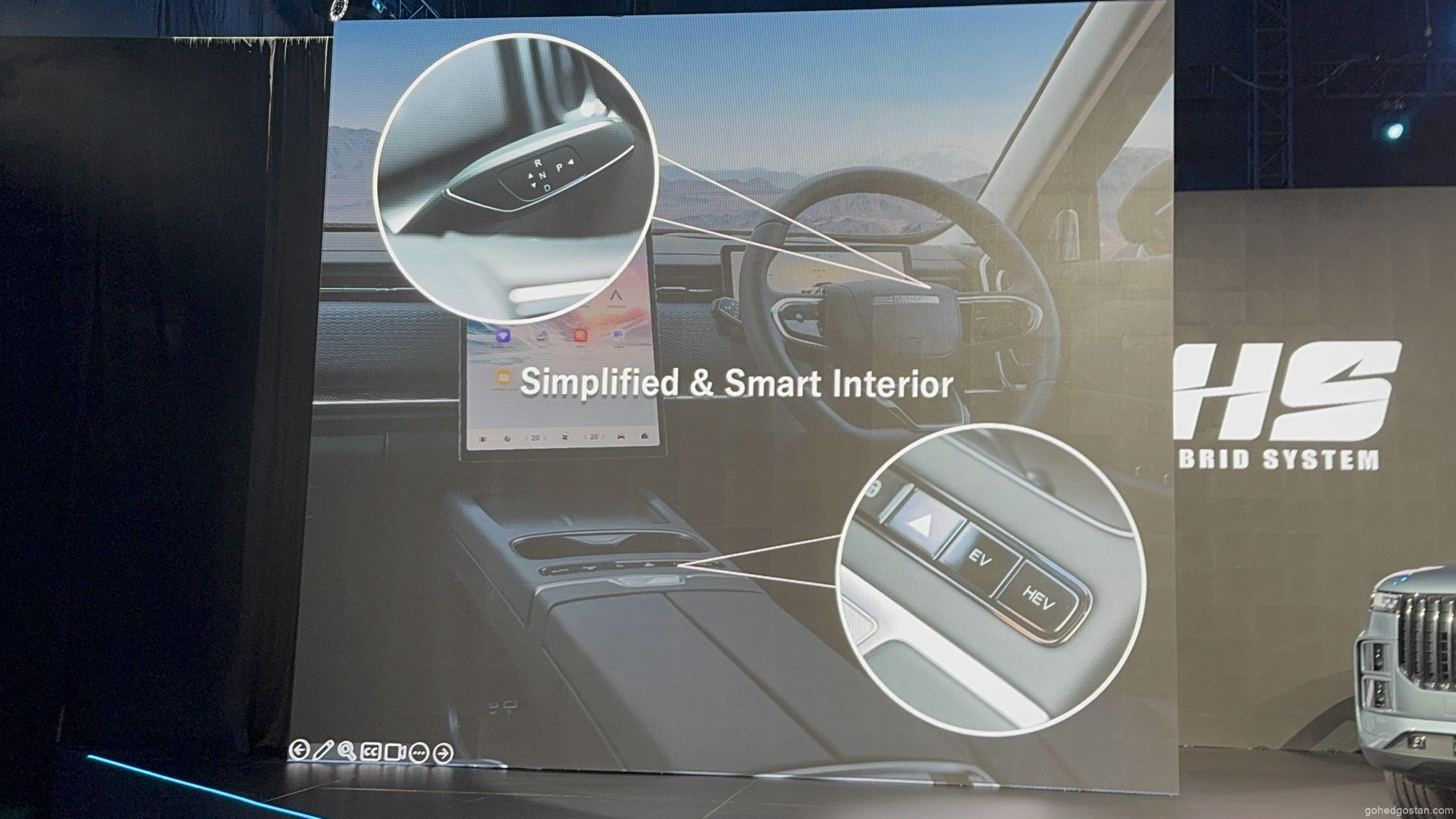 - Tombol gear digantikan dengan penukar gear pada turus stereng, memberikan lebih ruang pada konsol tengah, mengekalkan estetika kabin yang minimalis tetapi moden.