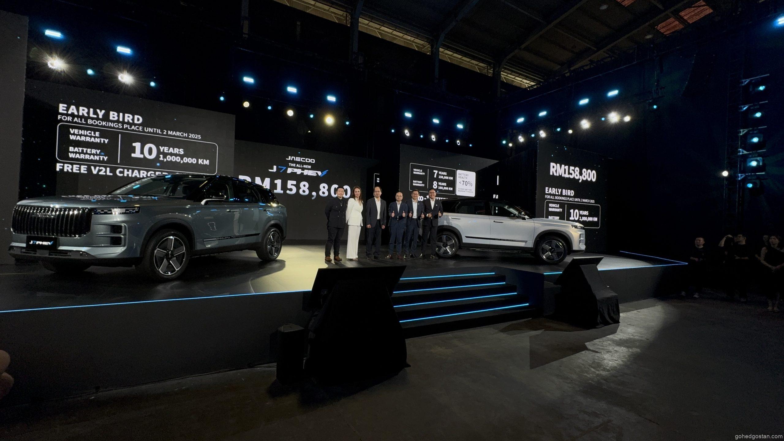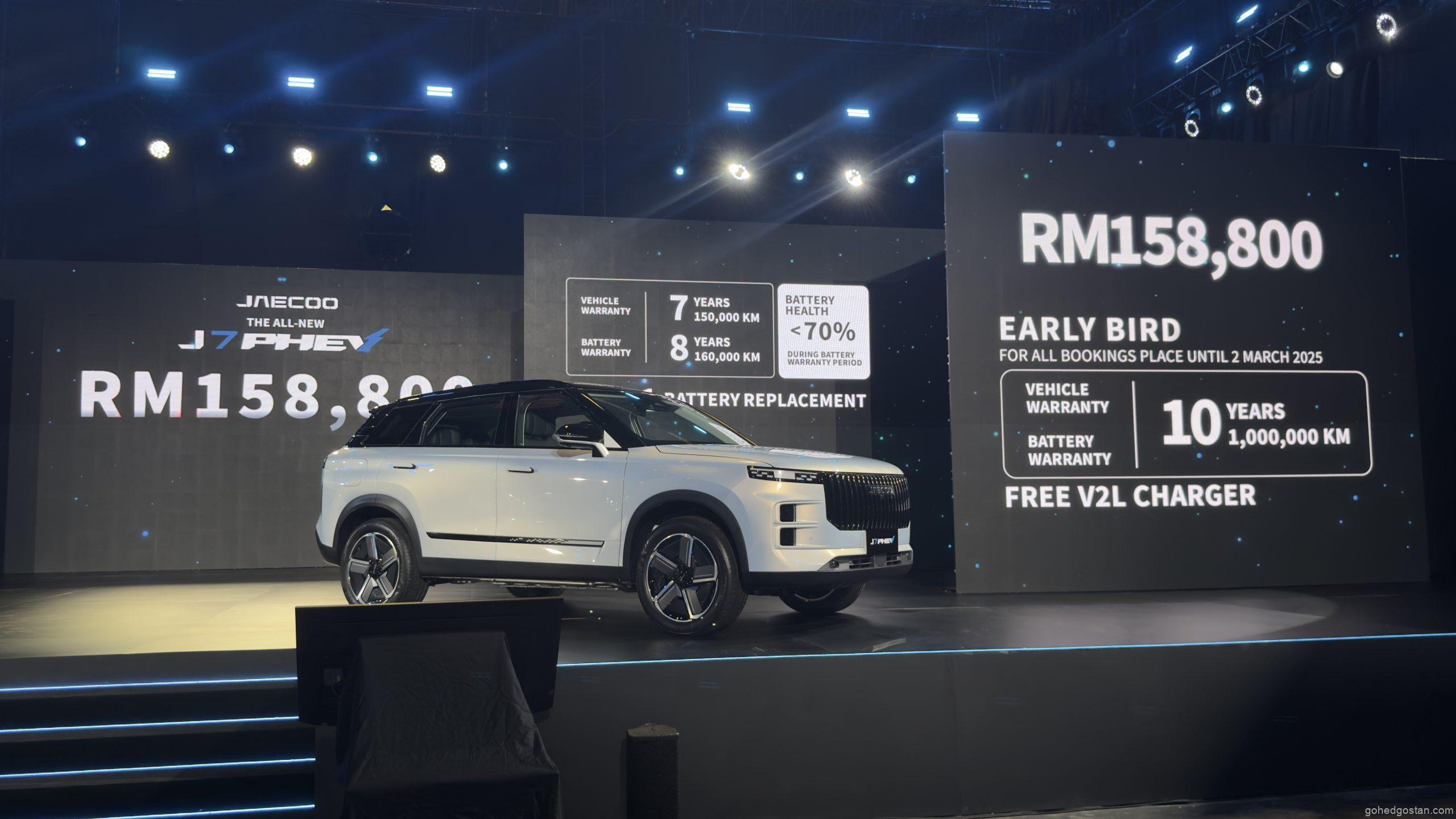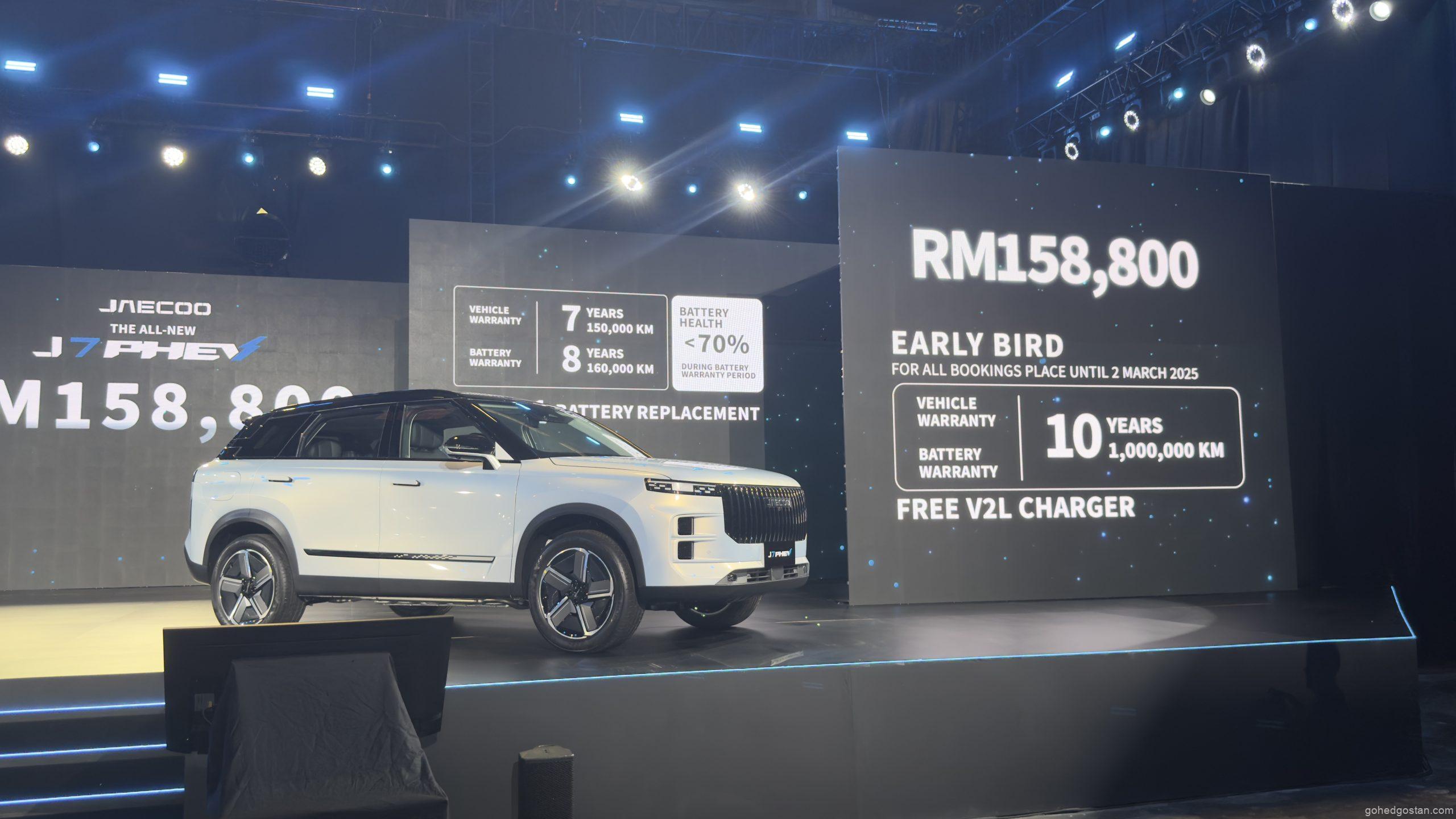 JAECOO J7 PHEV dilancarkan di Malaysia dengan harga RM158,800 bagi varian pacuan dua roda (2WD). Setiap pembelian disertakan dengan: