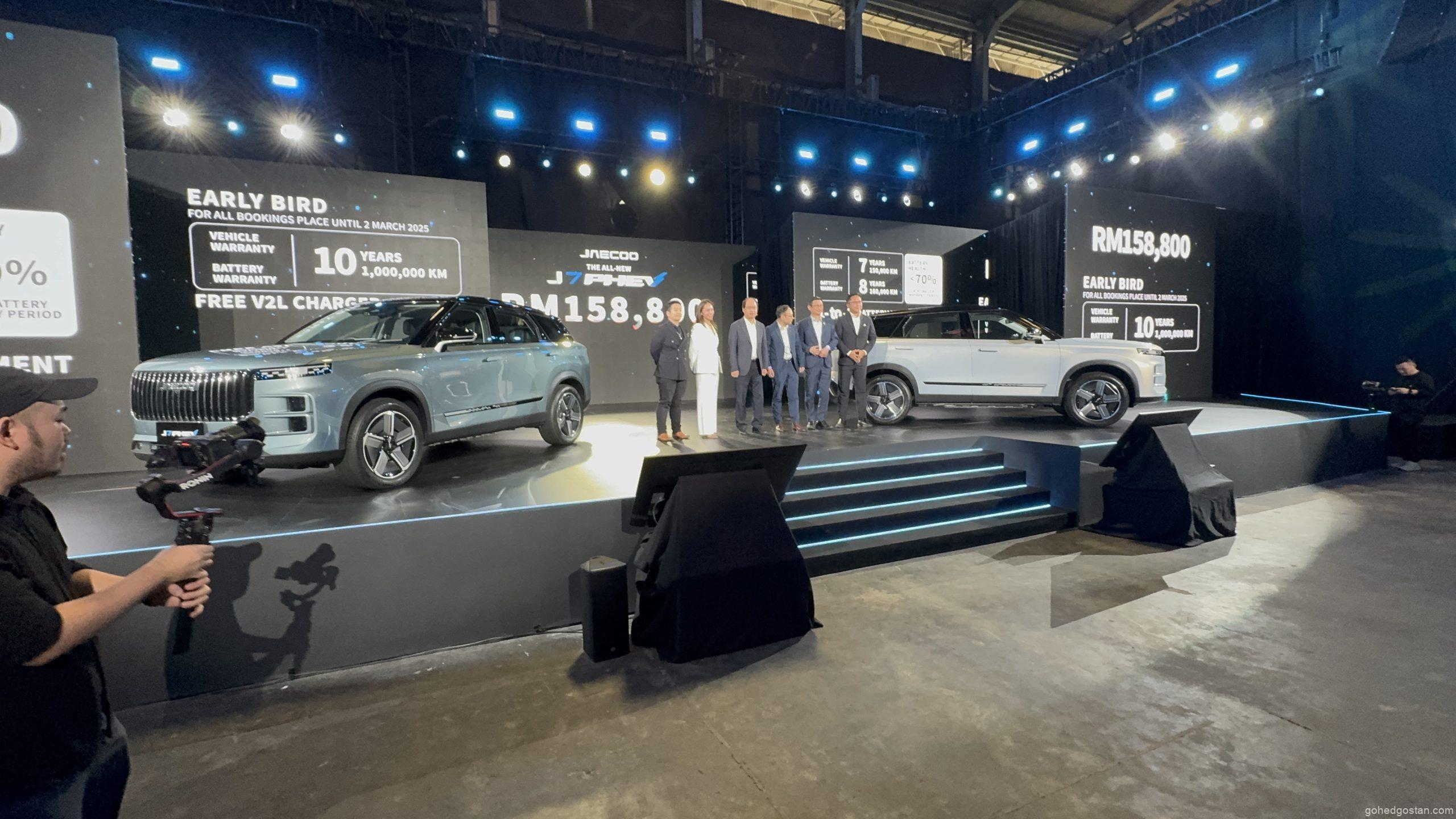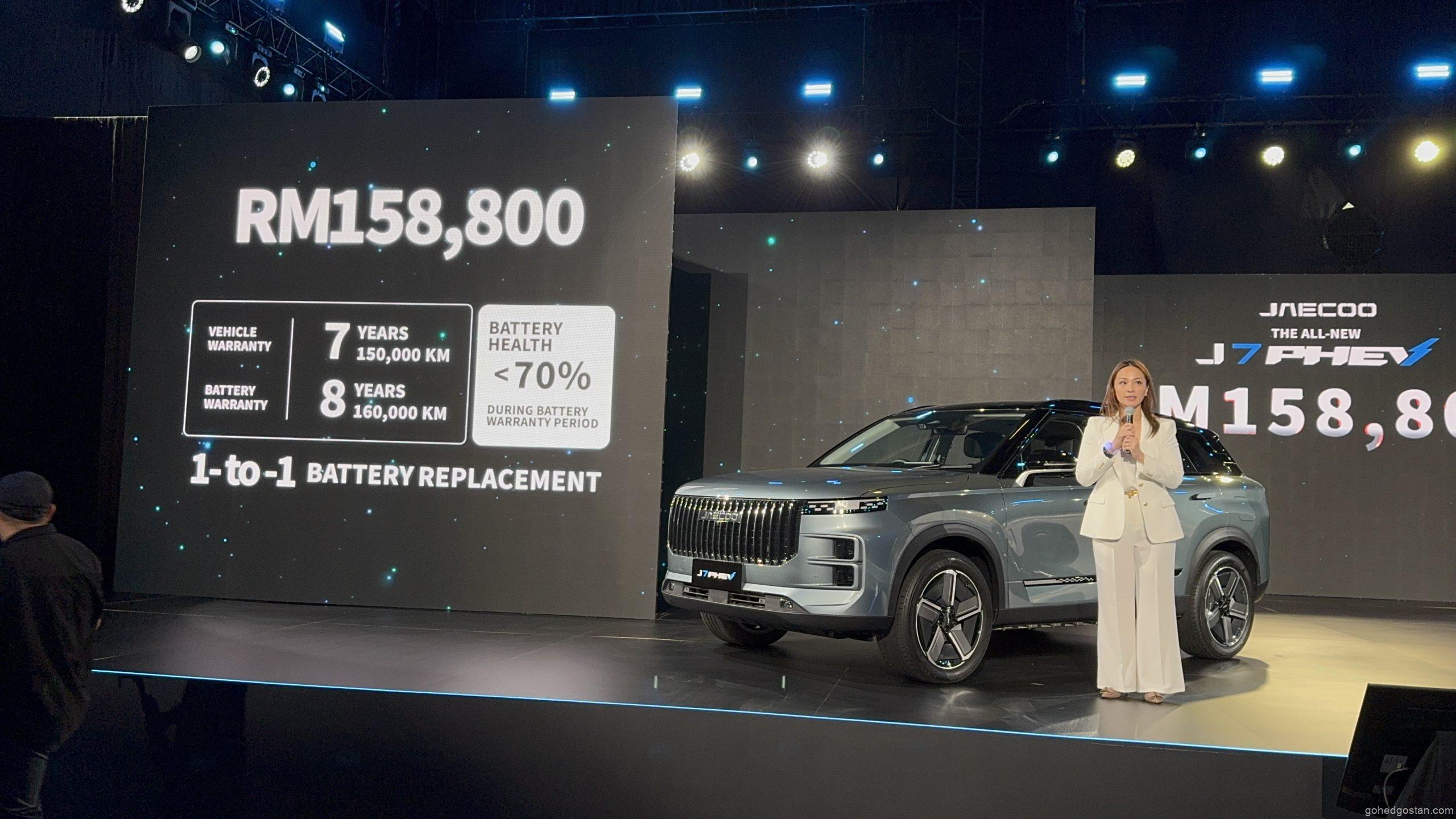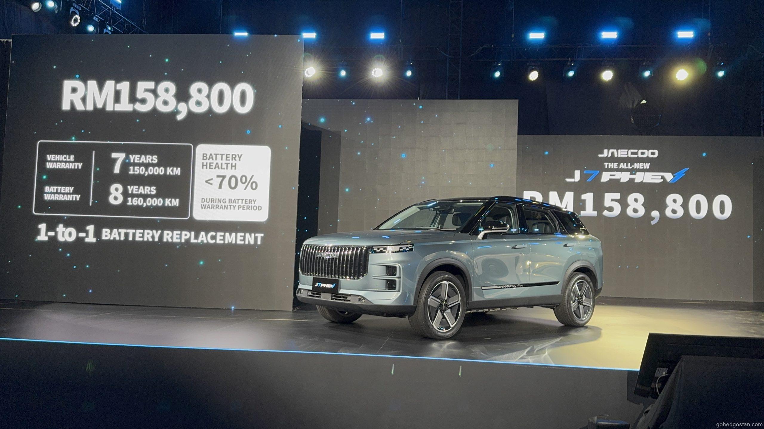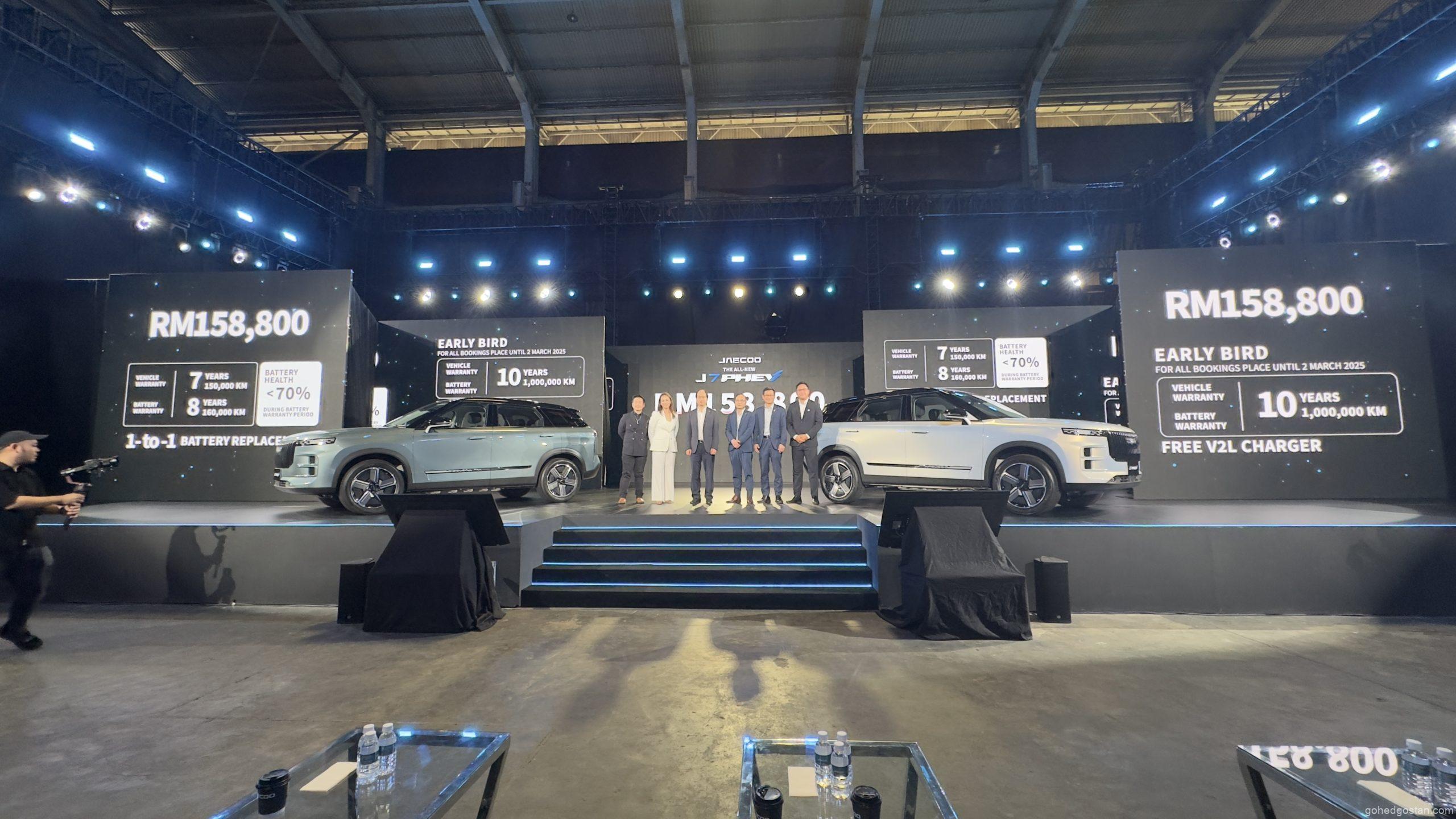 JAECOO J7 PHEV dilancarkan di Malaysia dengan harga RM158,800 bagi varian pacuan dua roda (2WD). Setiap pembelian disertakan dengan: