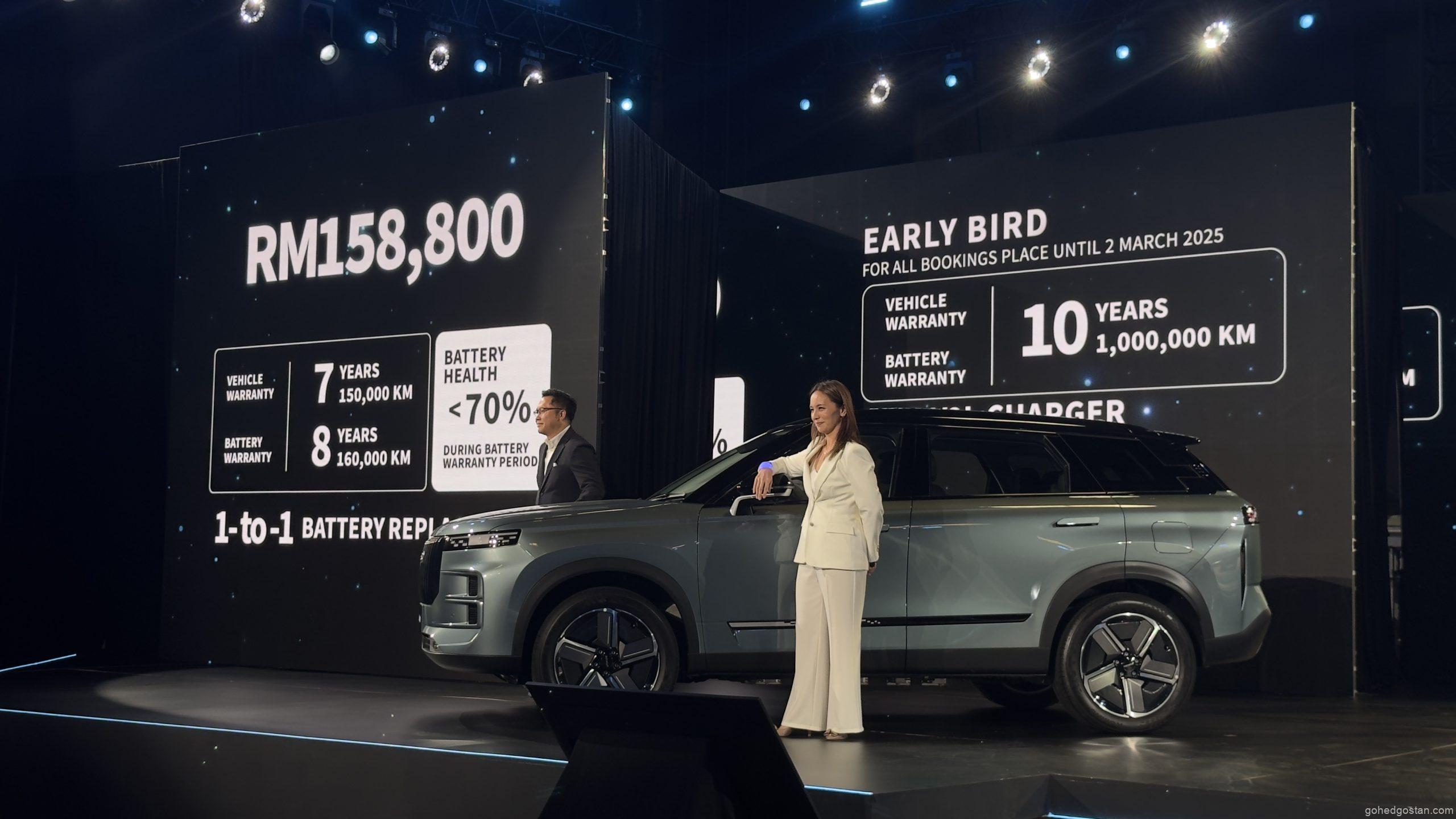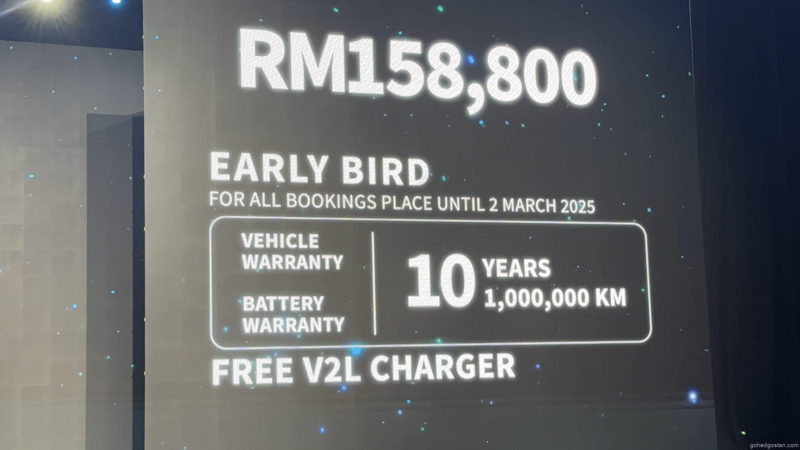 Sebagai tawaran pembeli awal, tempahan sebelum 2 Mac 2025 layak menerima waranti enjin dan bateri lanjutan selama 10 tahun atau 1,000,000km.