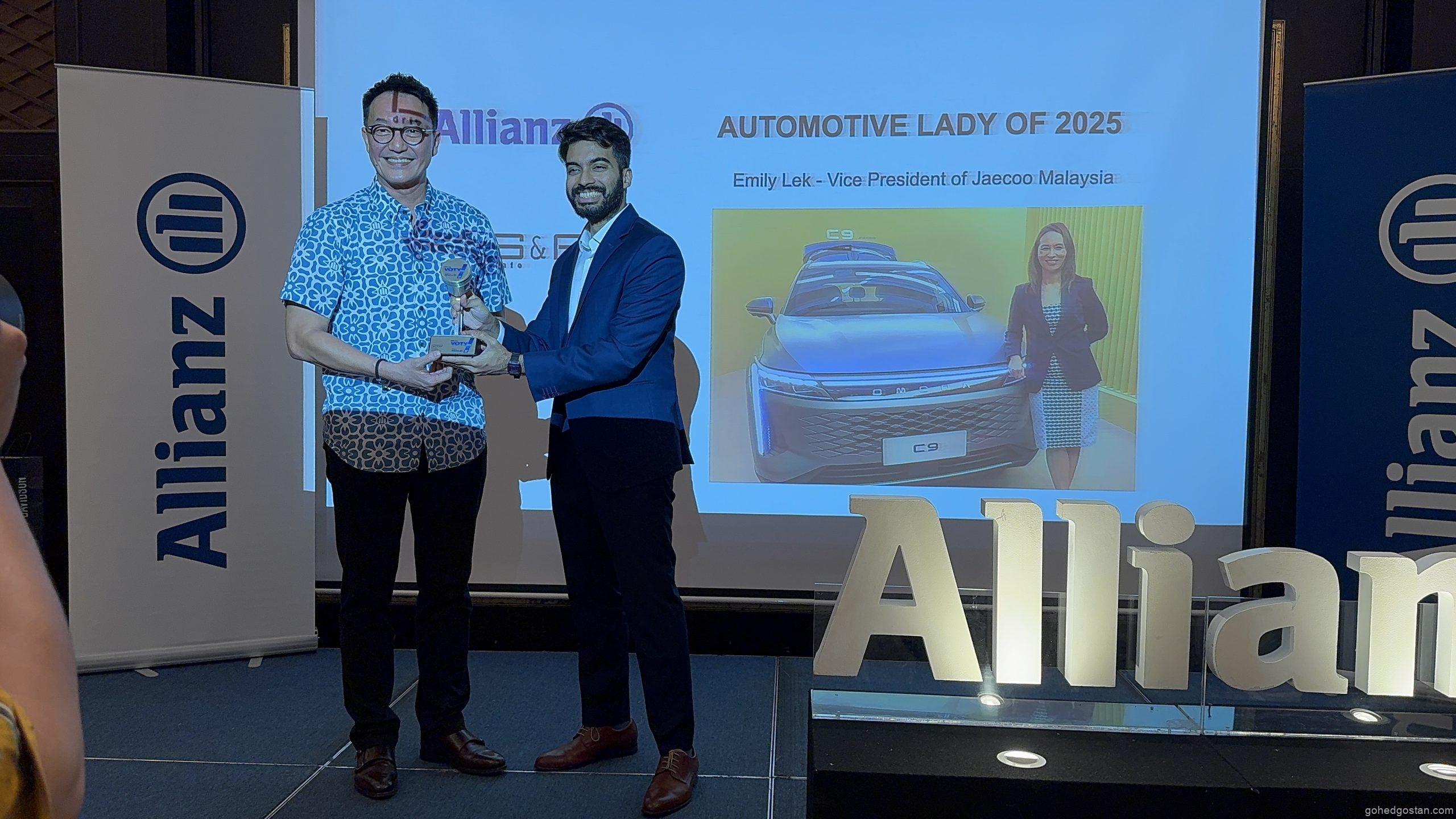 Bukan hanya kenderaan, insan-insan penting dalam industri turut diberi penghargaan. Syed Muzri, Pengarah Urusan Vantage Malaysia, dinobatkan sebagai Automotive Gentleman of 2025, manakala Emily Lek, Naib Presiden Jaecoo Malaysia, menerima gelaran Automotive Lady of 2025 – satu penghormatan yang selari dengan peranan aktif mereka dalam membentuk landskap automotif tempatan.