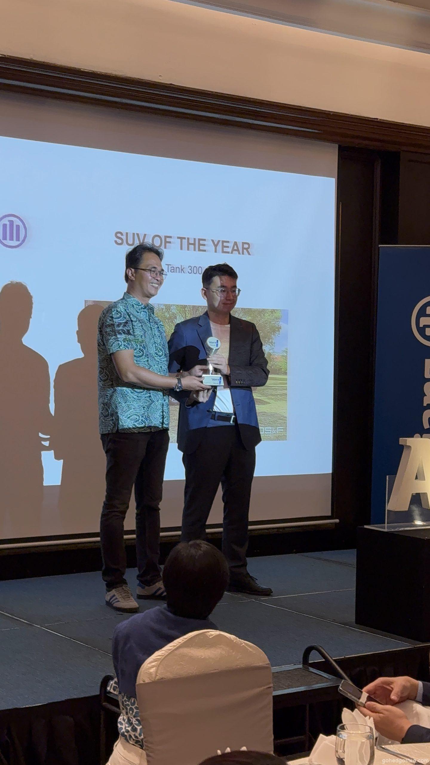 Untuk kategori SUV Terbaik, Tank 300 mencuri tumpuan dengan rekaan berani dan kemampuan luar jalan yang sukar ditandingi. Manakala Toyota Camry dinobatkan sebagai Executive Sedan of the Year, mengekalkan reputasi mantapnya di kalangan pengurus profesional dan eksekutif korporat.