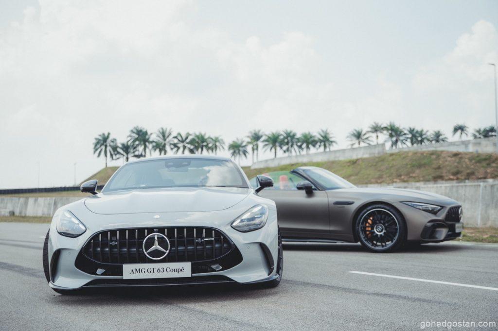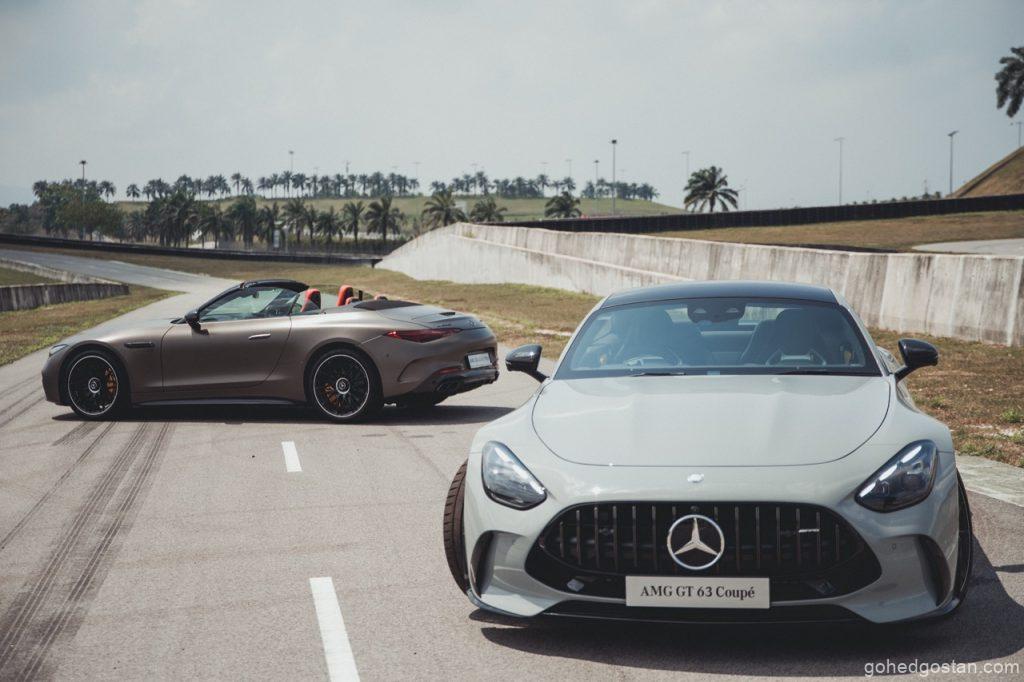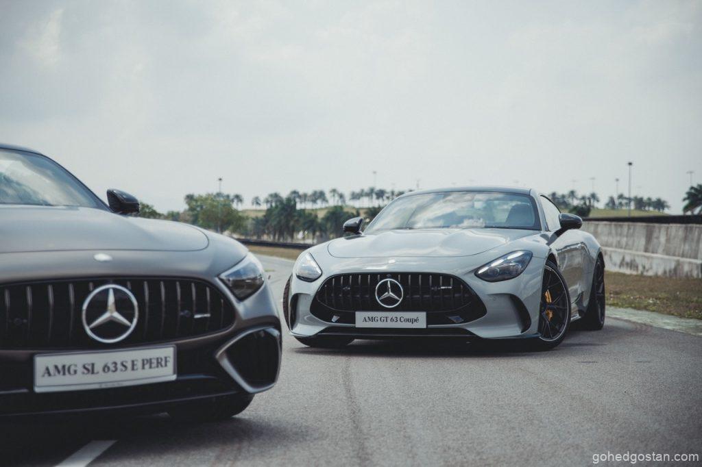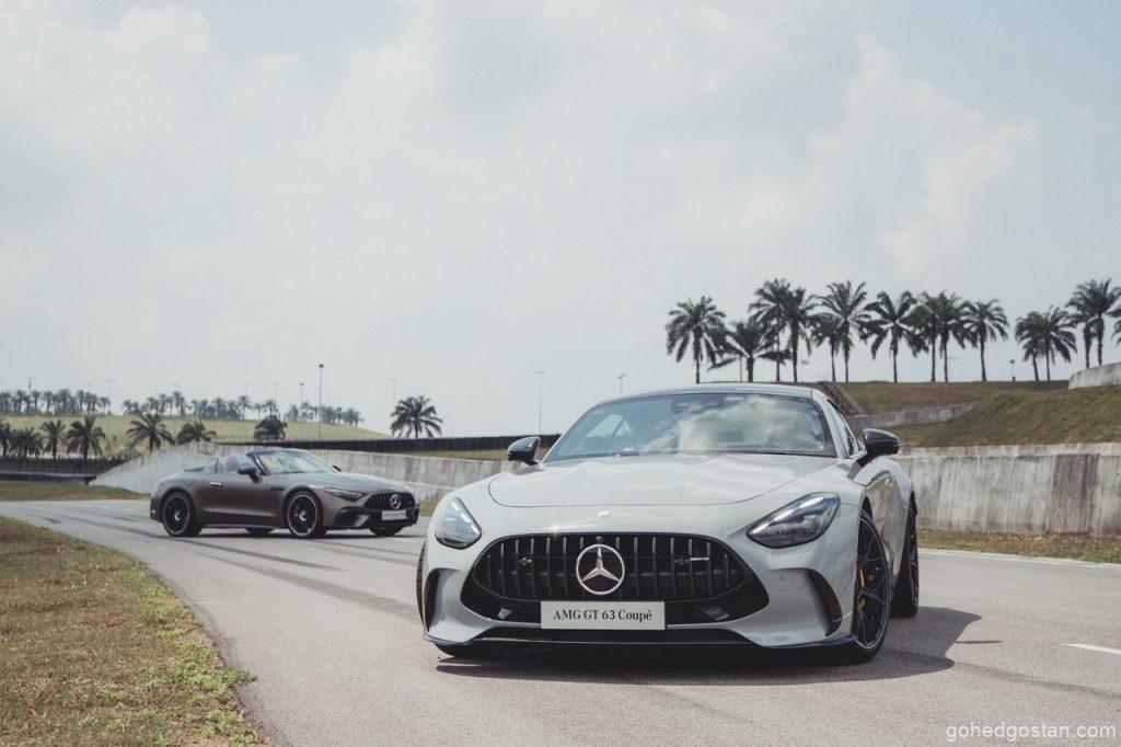 Petang 5 Jun 2025, langit Sepang bergetar apabila Mercedes-Benz Malaysia membuka pintu bilik pameran sementara di SIC Driving Experience Centre. Serentak, Mercedes-AMG GT 63 4MATIC+ Coupé meluncur keluar, diikuti SL 63 S E Performance yang mempamerkan gabungan V8 dan motor elektrik. Kedua-dua model ber-DNA Affalterbach ini kontras pendekatan, namun sama-sama menuntut pemandu bersedia—seperti memegang harimau di buntut (Mercedes-Benz Malaysia, kenyataan media 5 Jun 2025).