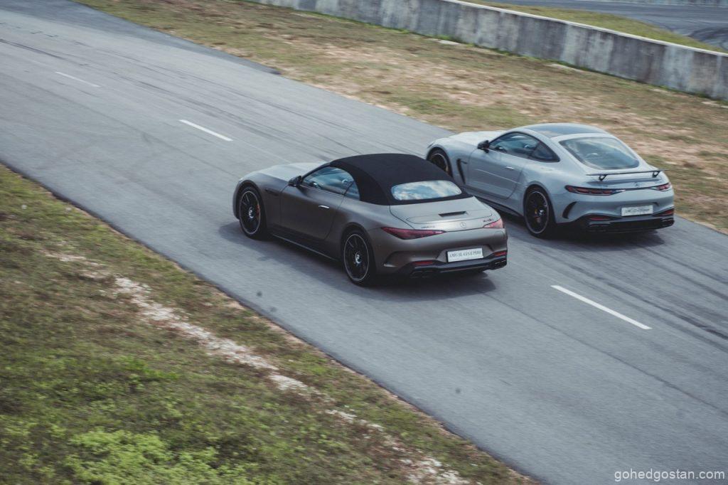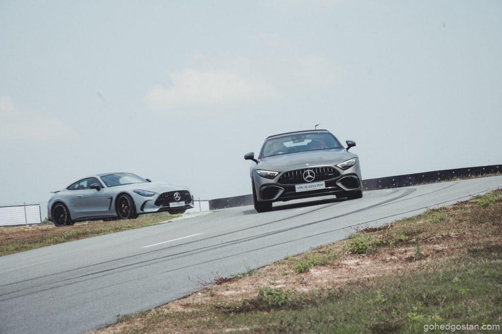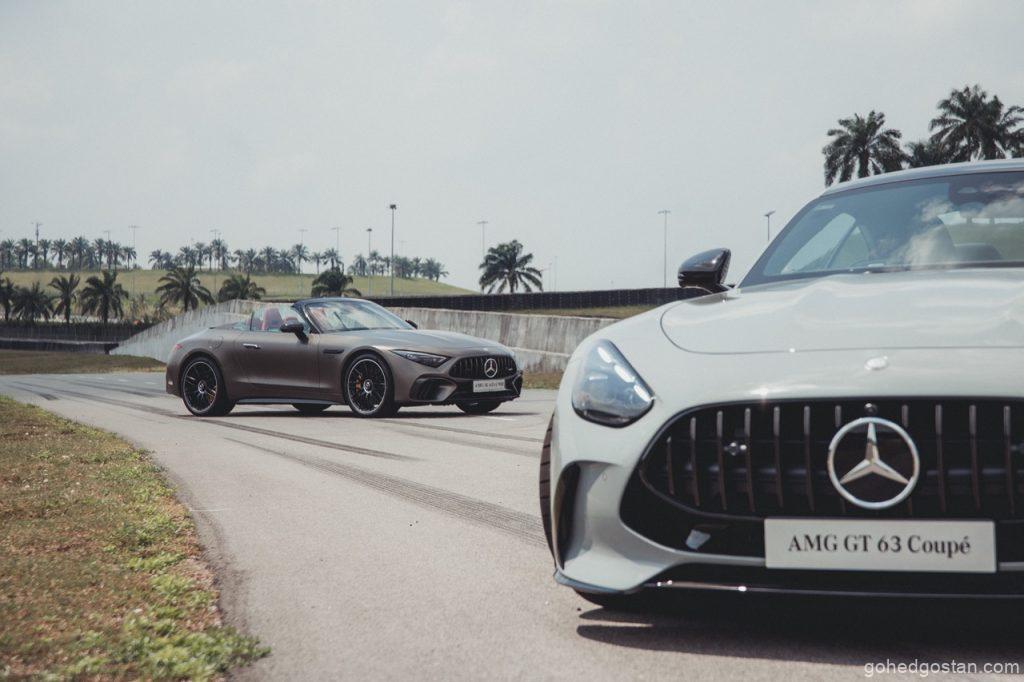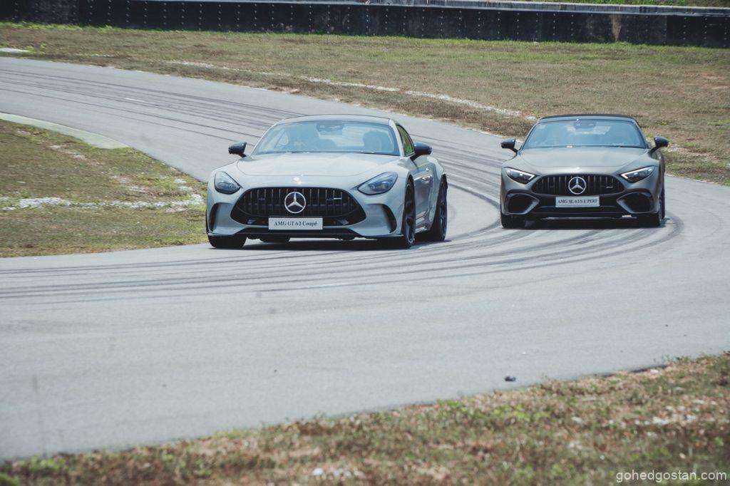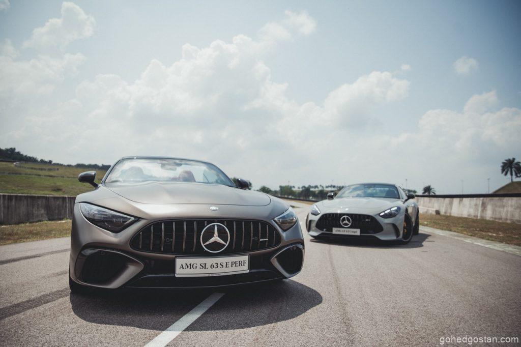 Petang 5 Jun 2025, langit Sepang bergetar apabila Mercedes-Benz Malaysia membuka pintu bilik pameran sementara di SIC Driving Experience Centre. Serentak, Mercedes-AMG GT 63 4MATIC+ Coupé meluncur keluar, diikuti SL 63 S E Performance yang mempamerkan gabungan V8 dan motor elektrik. Kedua-dua model ber-DNA Affalterbach ini kontras pendekatan, namun sama-sama menuntut pemandu bersedia—seperti memegang harimau di buntut (Mercedes-Benz Malaysia, kenyataan media 5 Jun 2025).
