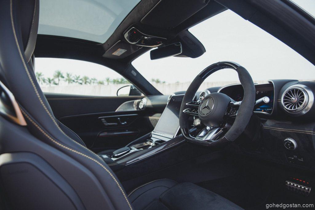 Garisan GT 63—bonet panjang, bumbung fastback, dan sayap belakang aktif—mengingatkan kita kepada ikan todak yang membelah permukaan air. SL 63 pula menawan jiwa hedonis: bumbung fabrik boleh lipat 15 saat pada kelajuan 60 km/j, memberi pengalaman pemanduan “open-sky” yang sukar ditandingi. Pakej gentian karbon dan rim 21-inci menjadikan roadster ini bak sut gala hitam dengan butang manset titanium.