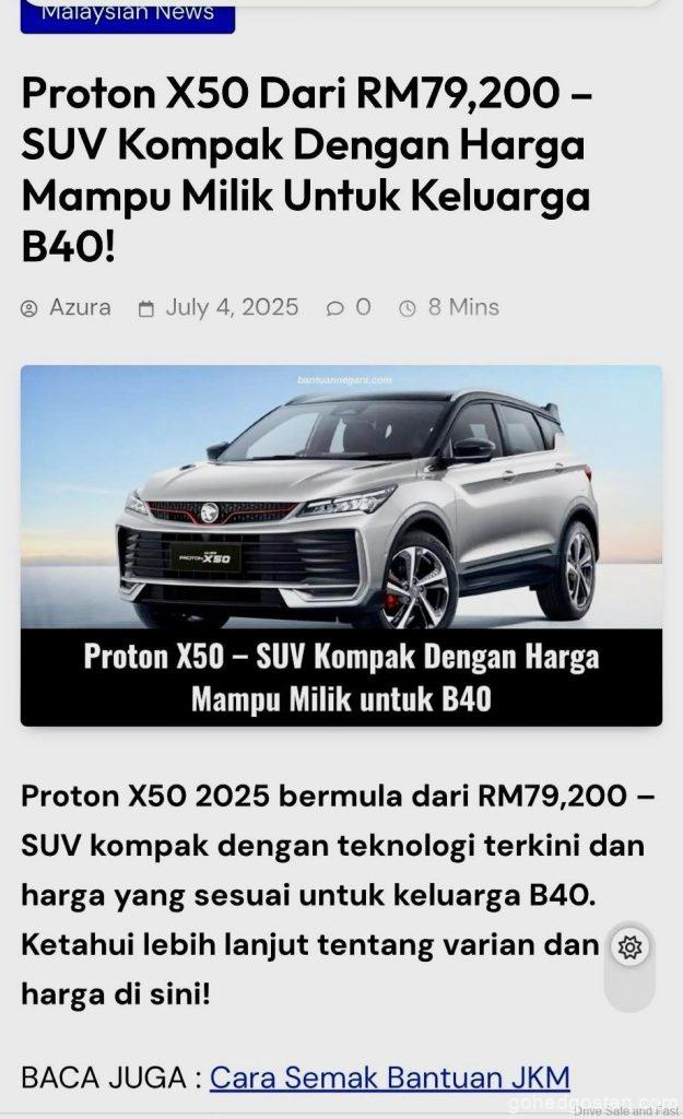 Adakah ini strategi kejutan dari PROTON, atau sekadar ‘leak’ awal yang sengaja dibiarkan? Satu hantaran yang tular di media sosial baru-baru ini mencetuskan spekulasi besar dalam kalangan peminat automotif tempatan: harga permulaan RM79,200 untuk Proton X50 facelift baharu. Tiada pengesahan rasmi setakat ini, namun jika benar, ini berpotensi menggoncang posisi Chery Tiggo Cross dan Perodua Ativa dalam segmen SUV kompak.