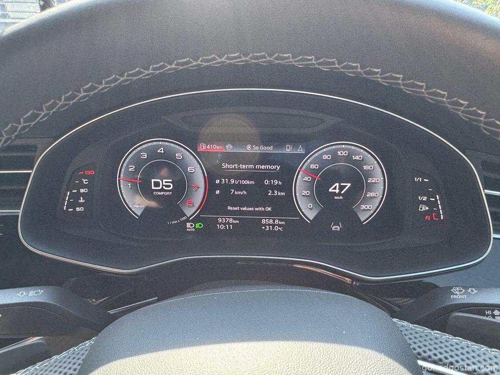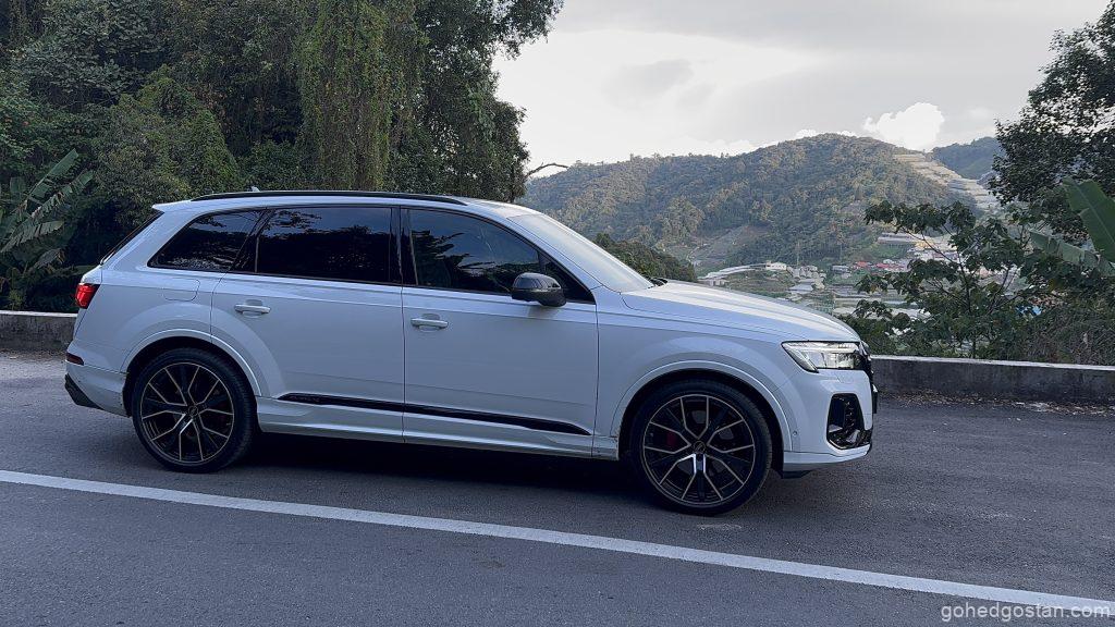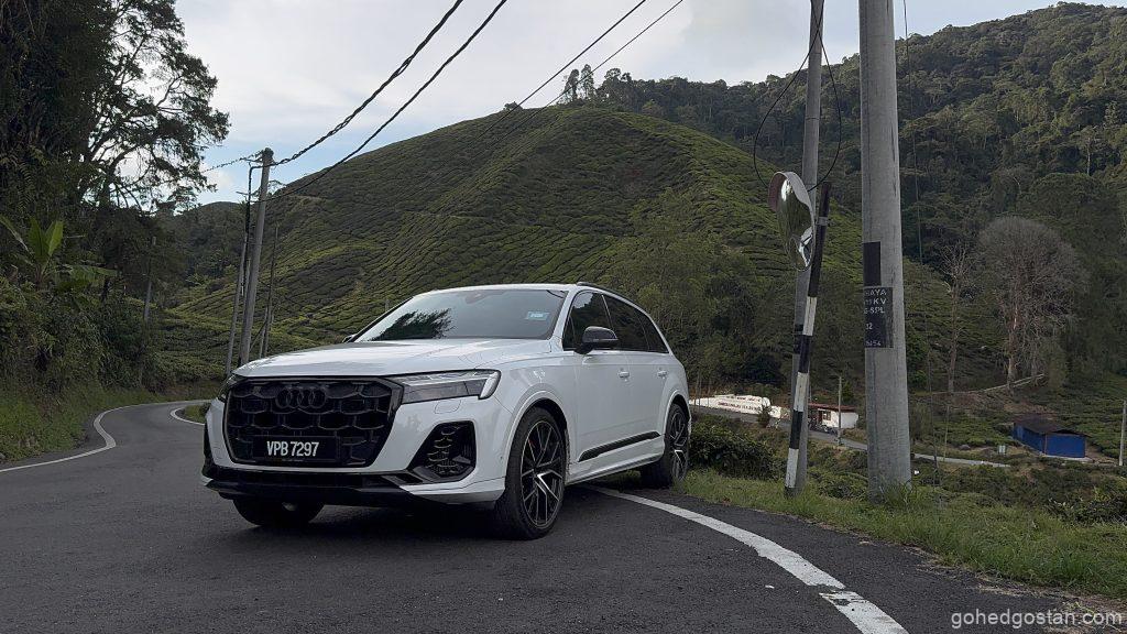 Enjin 3.0 liter V6 TFSI mild-hybrid dengan 340 PS dan 500 Nm memberikan kuasa konsisten di kedua-dua perjalanan. Dalam trip keluarga ke Cameron, laluan mendaki dan berliku tidak menimbulkan kerisauan. Stereng semua roda menjadikan SUV ini terasa lebih kecil daripada dimensinya, dan suspensi udara adaptif memastikan penumpang tidak mengeluh meskipun melalui jalan bergelombang.