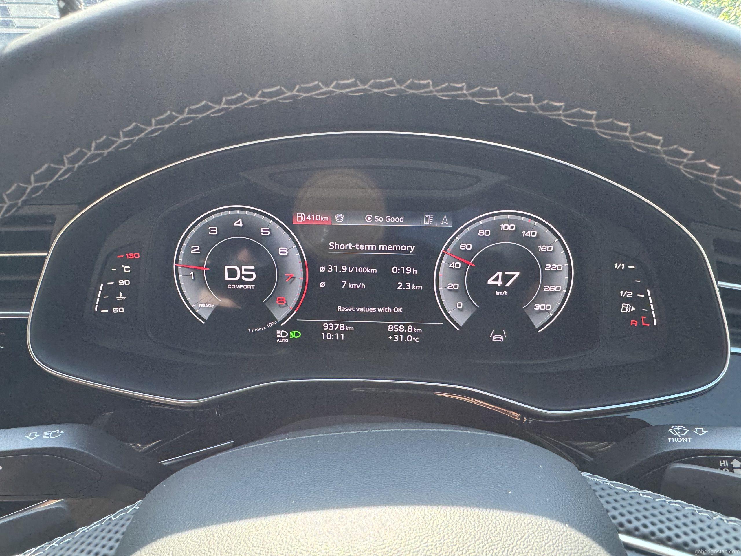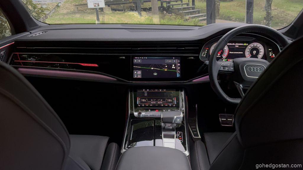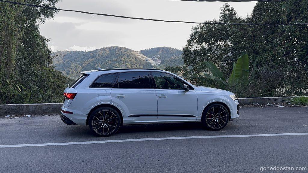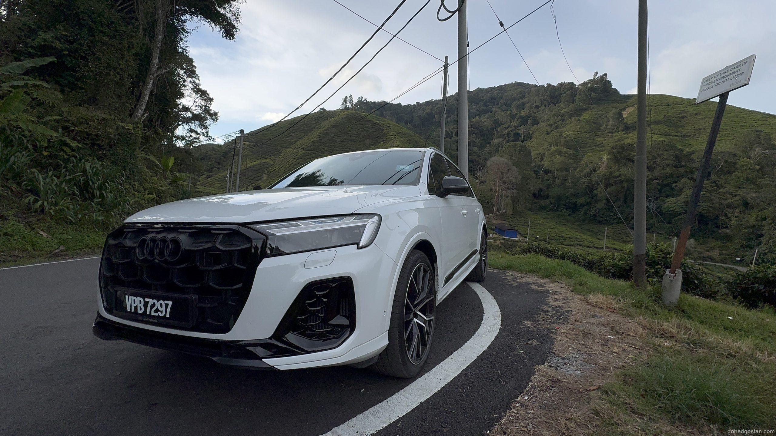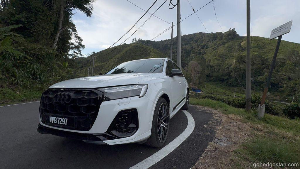 Enjin 3.0 liter V6 TFSI mild-hybrid dengan 340 PS dan 500 Nm memberikan kuasa konsisten di kedua-dua perjalanan. Dalam trip keluarga ke Cameron, laluan mendaki dan berliku tidak menimbulkan kerisauan. Stereng semua roda menjadikan SUV ini terasa lebih kecil daripada dimensinya, dan suspensi udara adaptif memastikan penumpang tidak mengeluh meskipun melalui jalan bergelombang.