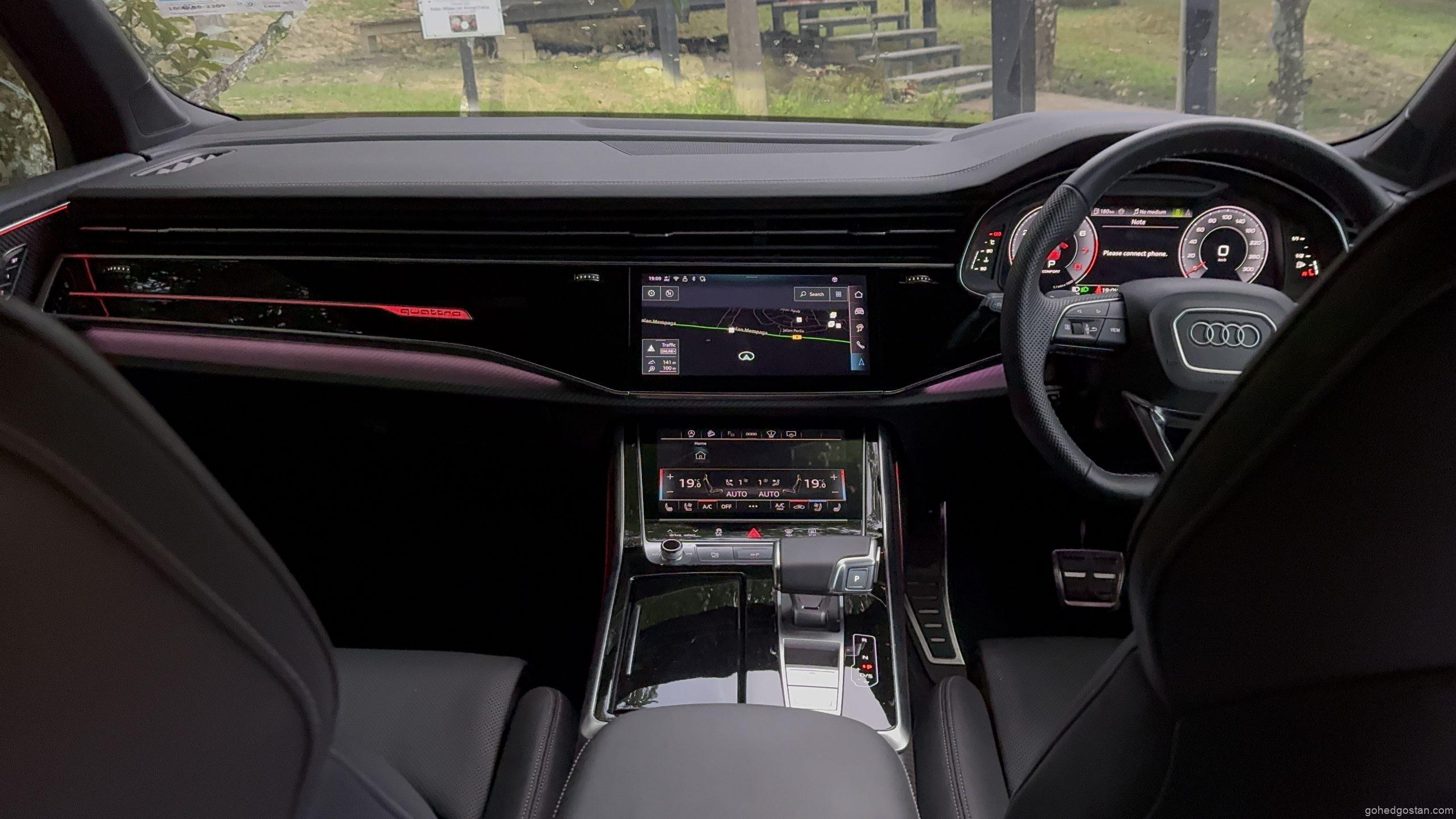 Sistem Audi Pre Sense, Adaptive Cruise Control dan kamera pandangan sekeliling bekerja tanpa terasa terlalu mendesak. Ketika parkir di kawasan sempit kebun strawberi Cameron atau parkir tanah merah di D’Bilut, teknologi ini memberikan keyakinan. Ivan pula amat tertarik dengan butiran kecil seperti “power latching doors” yang membuat pintu tertutup kemas tanpa perlu dibanting.