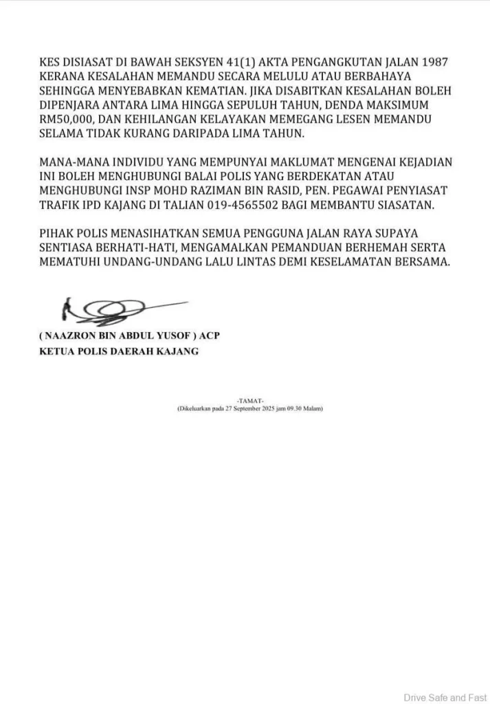 Siasatan polis kini memberi tumpuan kepada dua aspek penting: keadaan mekanikal lori serta tahap kesedaran pemandu. Jika terbukti terdapat pengabaian, bukan sahaja pemandu tetapi juga pemilik lori harus dipertanggungjawabkan.