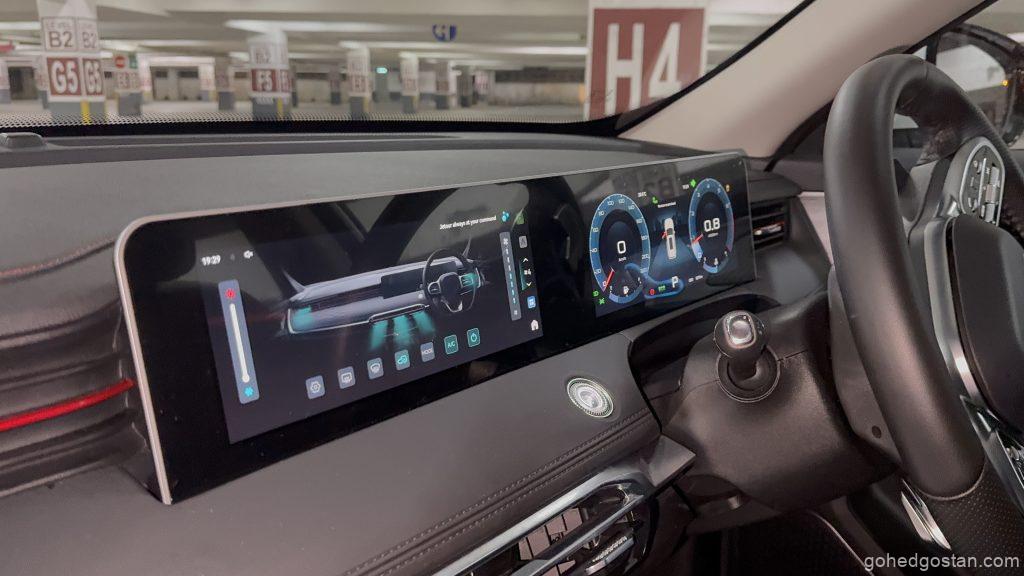 Masuk sahaja ke dalam, terasa seolah-olah berada dalam SUV segmen premium. Dua skrin 10.25 inci mendominasi papan pemuka, sambungan Apple CarPlay dan Android Auto tanpa wayar berfungsi dengan baik, dan ada pengecas telefon pintar tanpa wayar 50W yang cukup pantas.