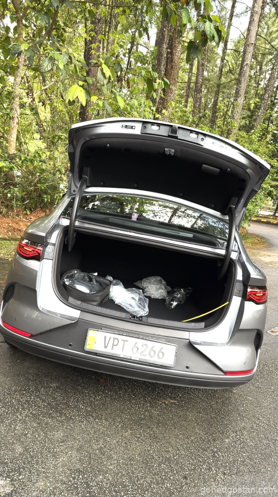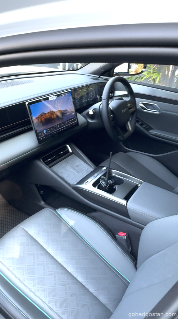 Ketika hujan mula turun, sistem kawalan kestabilan dan cengkaman tayar bekerja dengan senyap — memastikan kereta kekal lurus walau melalui lopak air yang dalam. Dalam kabin pula, suasana kekal senyap; lapisan penebat bunyi, sistem penghawa dingin dengan penapis PM2.5, serta kerusi hadapan berpenyejuk menjadikan pemanduan panjang tidak meletihkan.