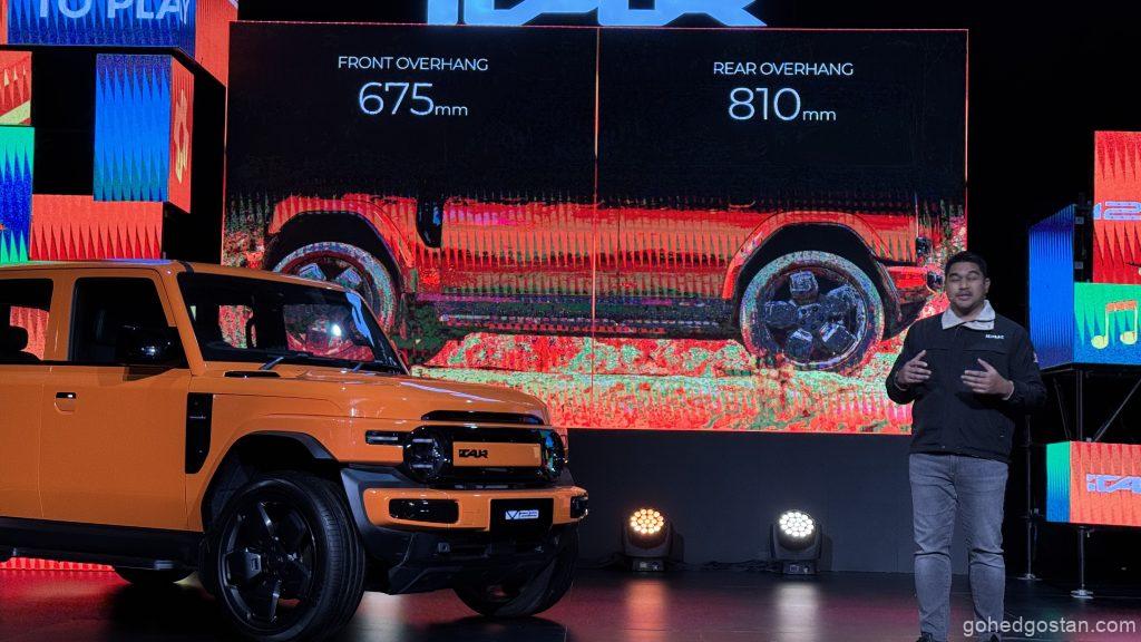 Unjuran pendek depan dan belakang membolehkan sudut tuju 42° dan sudut berlepas 41°, dibantu keupayaan menawan kecerunan sehingga 40%. Dengan jarak lega 210 mm, ia juga boleh meredah air sedalam 600 mm. Ciri-ciri ini menandakan ia bukan sekadar EV bandar; inilah percubaan sebenar untuk menjadikan EV sesuai untuk laluan sukar.