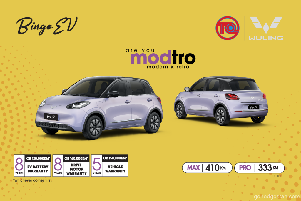 Harga rasmi bermula RM67,800 untuk Bingo PRO dan RM72,800 untuk Bingo MAX. Dengan rebat tunai RM5,000 di bawah Bingo’s Fabulous 5 Perks, harga atas jalan turun kepada RM62,800 (PRO) dan RM67,800 (MAX). Pakej ini turut merangkumi jaminan bateri EV dan motor pemacu selama lapan tahun, jaminan kenderaan lima tahun, serta faedah insurans khusus EV.