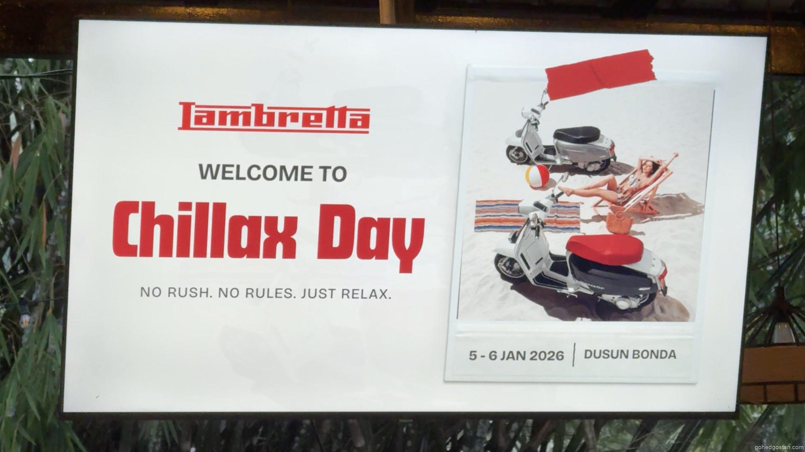 Dua hari di Dusun Bonda itu tidak dimulakan dengan ucapan panjang atau jadual yang ketat. Sebaliknya, suasana yang terasa sejak awal ialah satu jemputan untuk memperlahankan langkah. Lambretta Chillax Day bukan acara pelancaran produk, bukan juga sesi jualan berselindung. Ia lebih jujur daripada itu—satu ruang untuk komuniti berkumpul, bersembang, makan bersama, dan berehat tanpa tekanan.