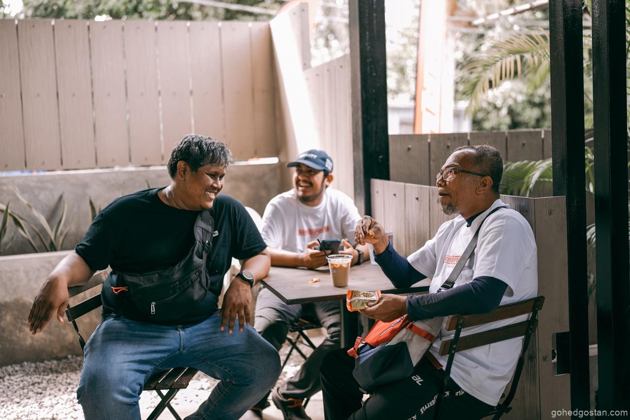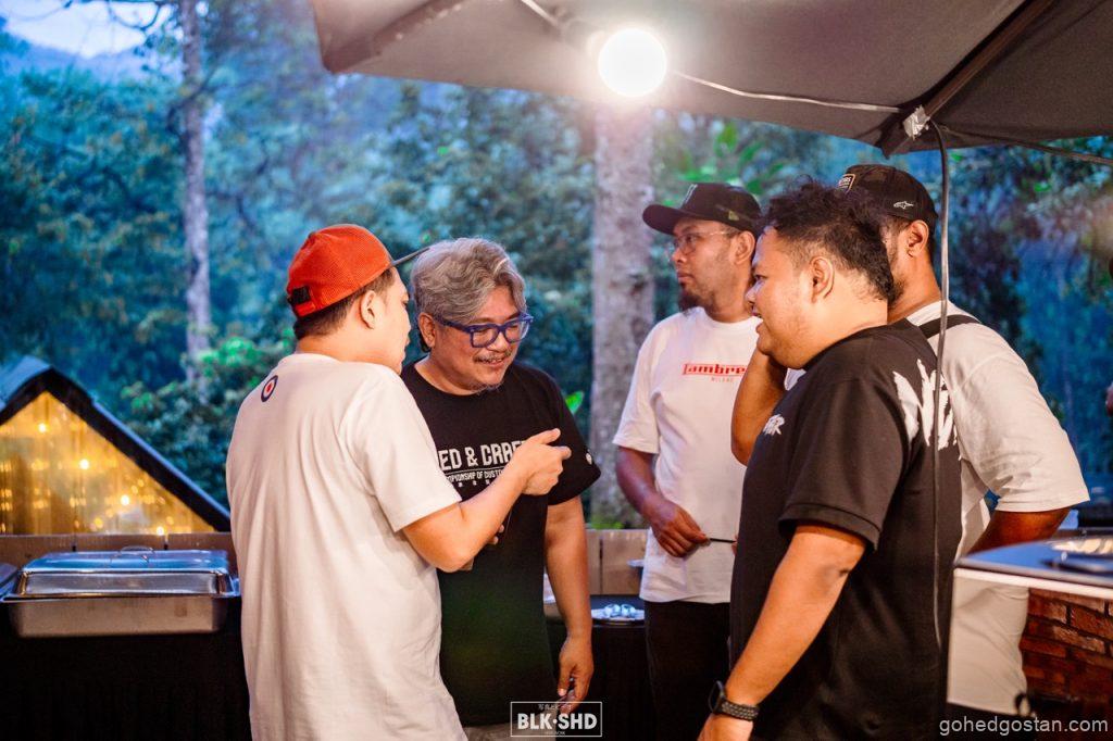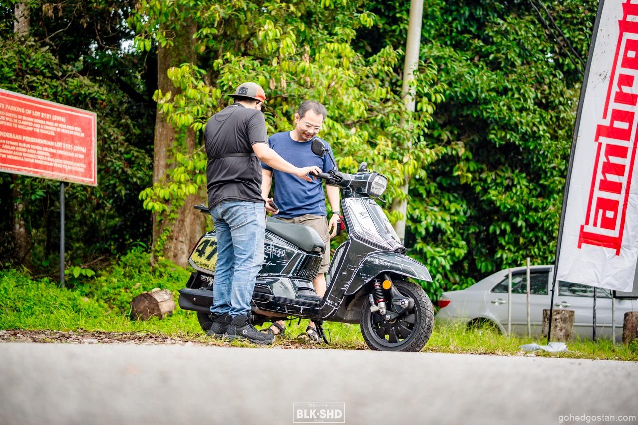 Peserta tiba secara berperingkat, daftar masuk, letak helmet, dan terus menyesuaikan diri dengan persekitaran hijau Dusun Bonda. Ada yang memilih lepak di khemah, ada yang sekadar duduk berbual sambil memerhati skuter yang dimamerkan. Pada sesi awal, pertemuan santai dan aktiviti ringan menjadi pemecah ais. Tidak ada hierarki jelas antara penganjur, wakil jenama, atau pemilik. Semua berada pada aras yang sama.
