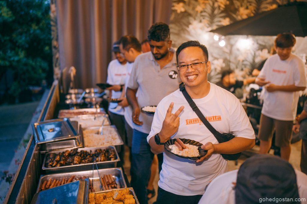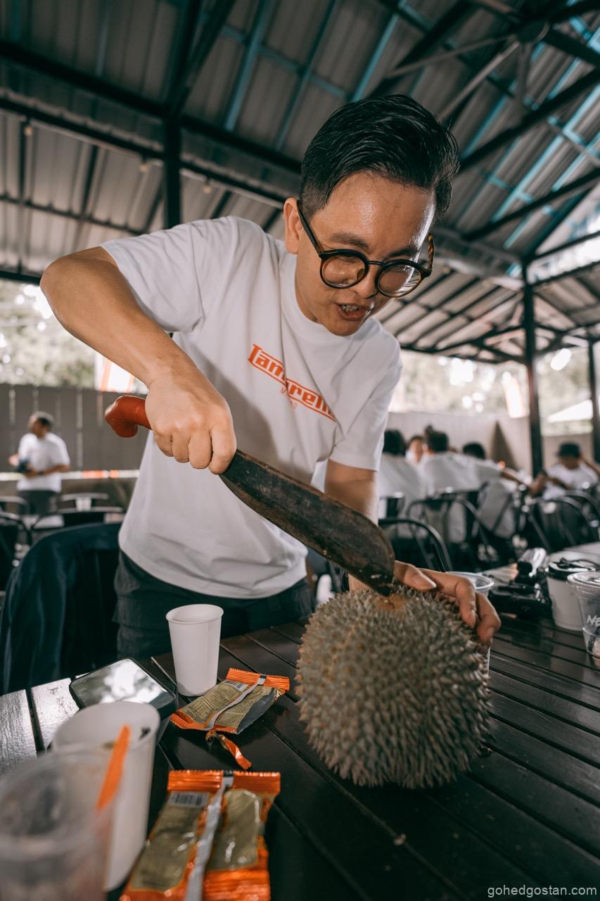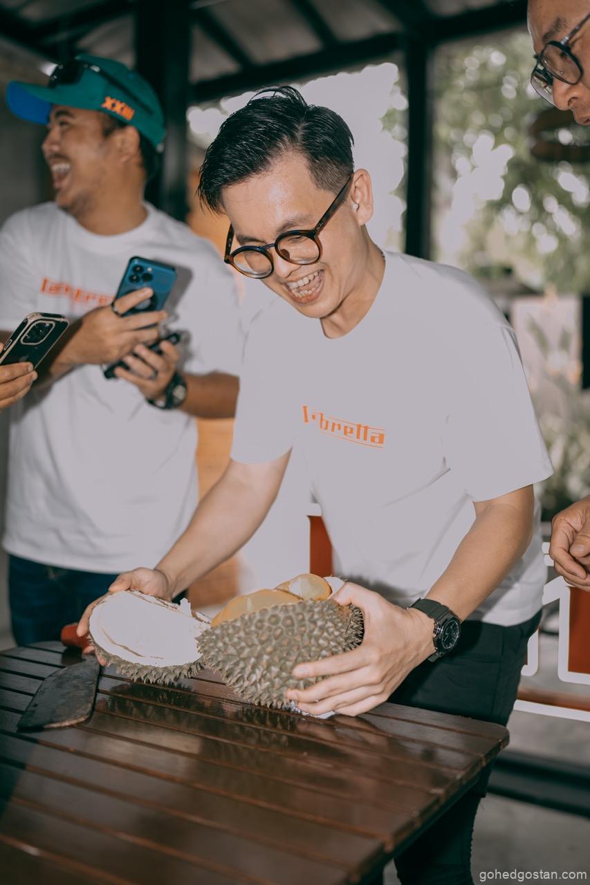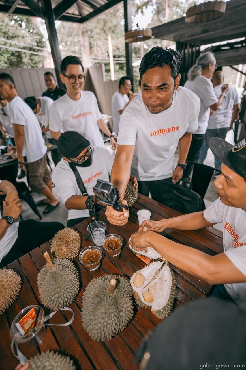 Sorotan awal tentulah sesi durian—Musang King dan Black Thorn. Ia mungkin kedengaran remeh, tetapi dalam konteks acara komuniti, perkongsian seperti ini memainkan peranan penting. Duduk semeja, berkongsi ulas durian, dan berbual tanpa skrip mencipta keakraban yang sukar dicapai dalam acara formal. Di sinilah identiti Lambretta dan juga Thunder Custom sebagai jenama gaya hidup cuba diterjemahkan secara praktikal, bukan melalui slogan.